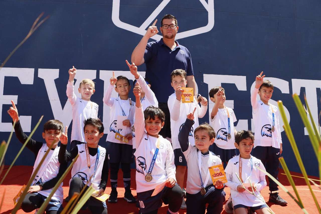 En la categoría 7x7 de primaria formativa, el Centro Educativo Mi Mundo se coronó campeón tras una destacada participación. Colegio Everest, con gran técnica colectiva, se quedó con la medalla de plata, mostrando que los Halconcitos también están formándose con fuerza desde temprana edad.