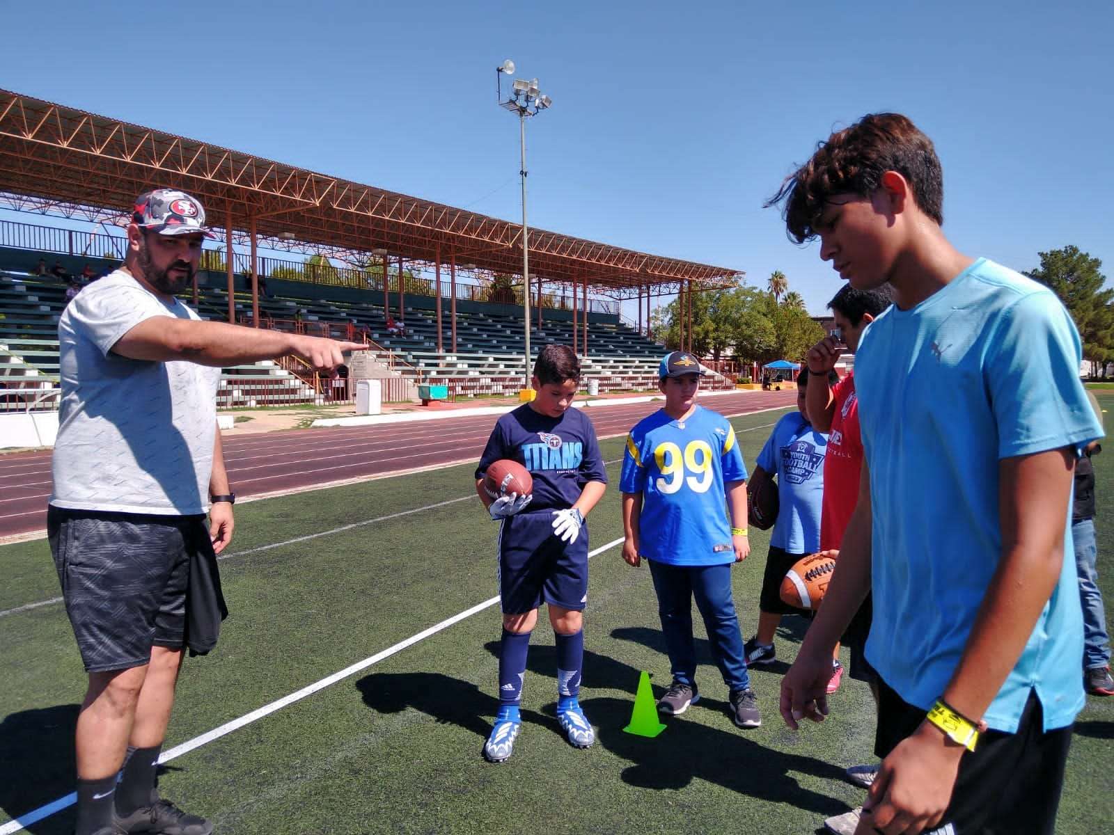 Ciudad Juárez, Chih. - Ramiro Pruneda, ex jugador de la Liga Nacional de Fútbol Americano en los Estados Unidos (NFL) y actual comentarista de ESPN, convivió con niños y niñas de esta frontera mediante un campamento de entrenamiento, dónde impartió una clínica deportiva y una plática motivacional.