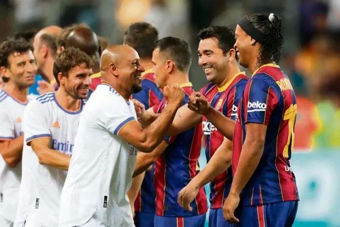 Madrid.- Los equipos “Leyendas” del Barça y el Real Madrid, con astros como Ronaldinho, Rivaldo o Figo y Roberto Carlos, jugaron ayer un disputado “Clásico” de exhibición que los merengues ganaron por un ajustado 3-2, deleitando al público que casi llenó el Estadio Bloomfield de Tel Aviv.