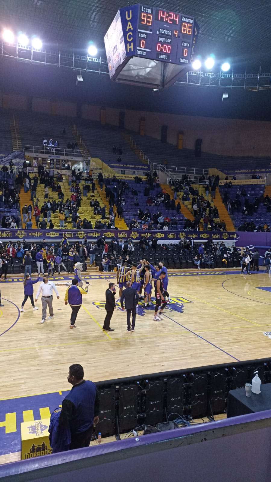 Chihuahua.- El equipo de Dorados del Estado de Chihuahua derrotó 93-86 a los vaqueros de Agua Prieta la noche del viernes en el Gimnasio Manuel Bernardo Aguirre, durante la Jornada 1 de la Temporada 2022.