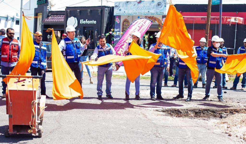 Delicias.- Continuando con las obras de pavimentación en pro de mejorar las condiciones de la ciudad a favor de los delicienses, el Presidente Municipal, Jesús Valenciano, dio el banderazo de arranque del tercer tramo en menos de 48 horas, esta vez en la avenida Río Conchos.