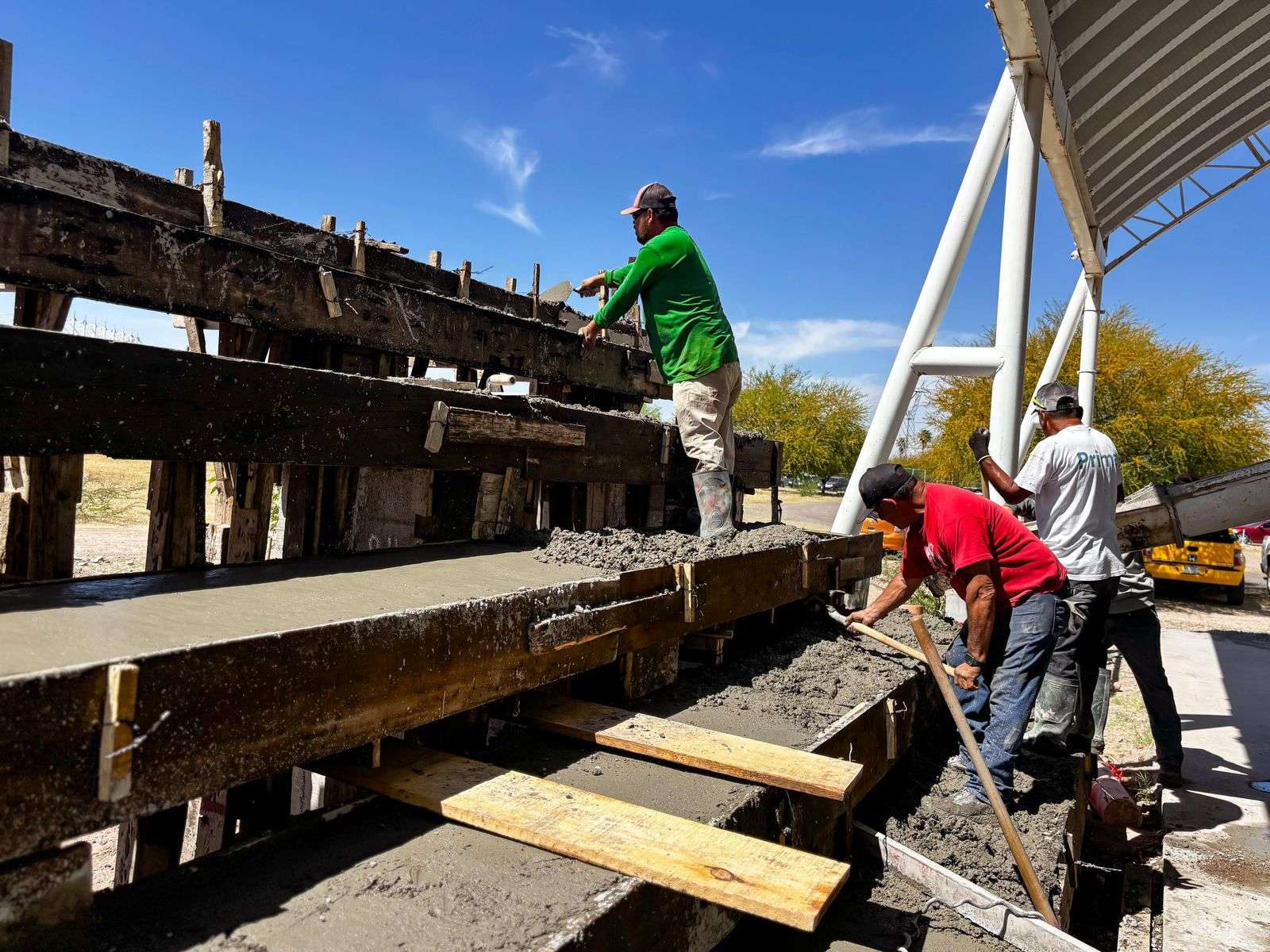 El funcionario explicó que actualmente se trabaja en el colado de las gradas, una etapa clave para la consolidación de la obra, la cual fue propuesta, autorizada y votada por la ciudadanía durante el ejercicio del presupuesto participativo del año pasado.