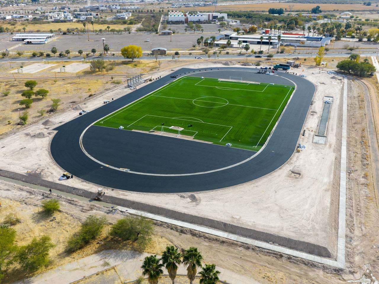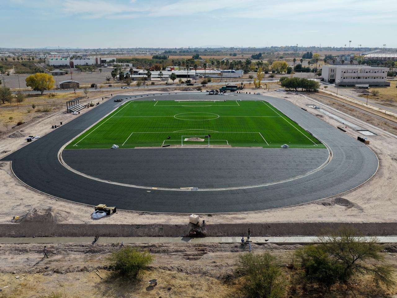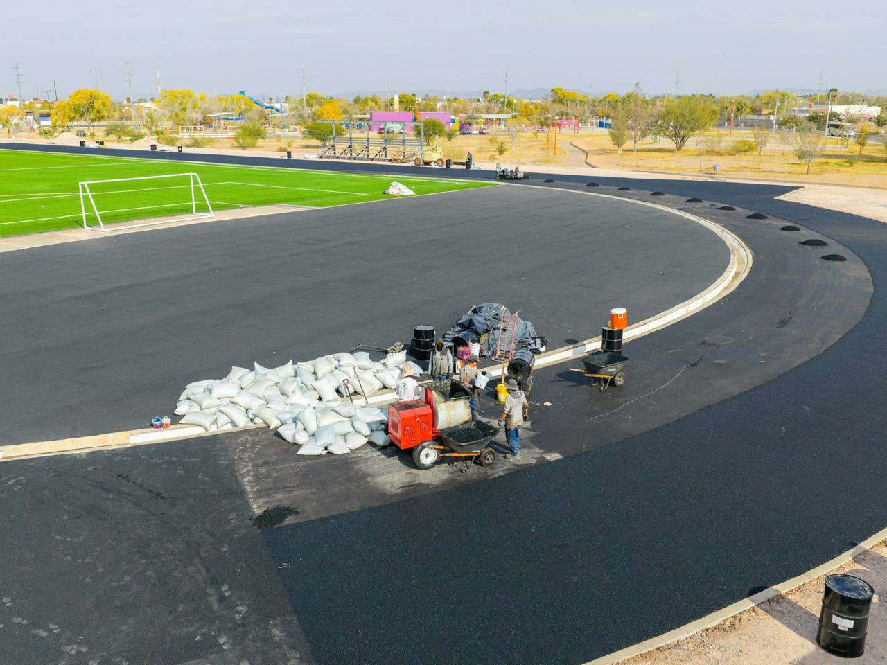 Delicias, Chih.- Ya luce completamente avanzada la obra de construcción de la pista de atletismo, informó el director de Obras Públicas, Alfonso Rodríguez Porras, al destacar que esta semana se estará concluyendo la colocación de la capa amortiguante, etapa fundamental antes de aplicar el tartán, que será la superficie final del espacio deportivo.