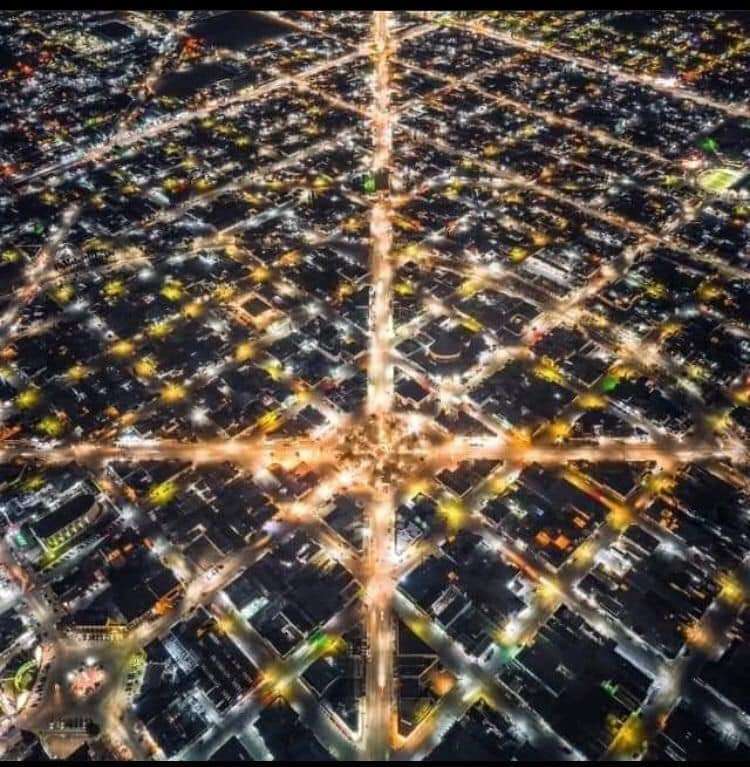 En las imágenes se puede apreciar desde los cielos la ciudad de Delicias desde los aires durante la noche.