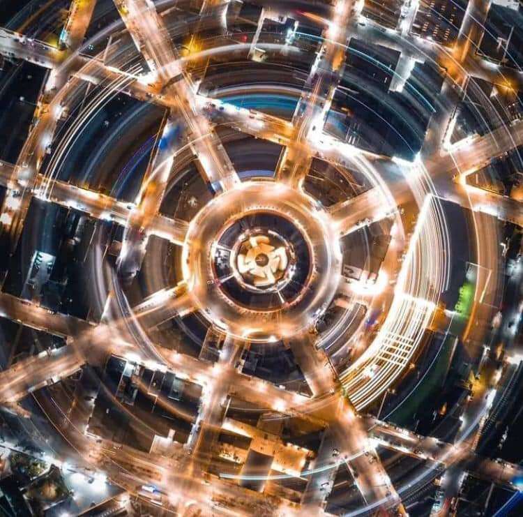 La escena muestra la forma en la que esta construida, la forma de su arquitectura en combinación con el ambiente nocturno que adorna los edificios con las luces mercuriales que dieron como resultado increíbles fotografías.