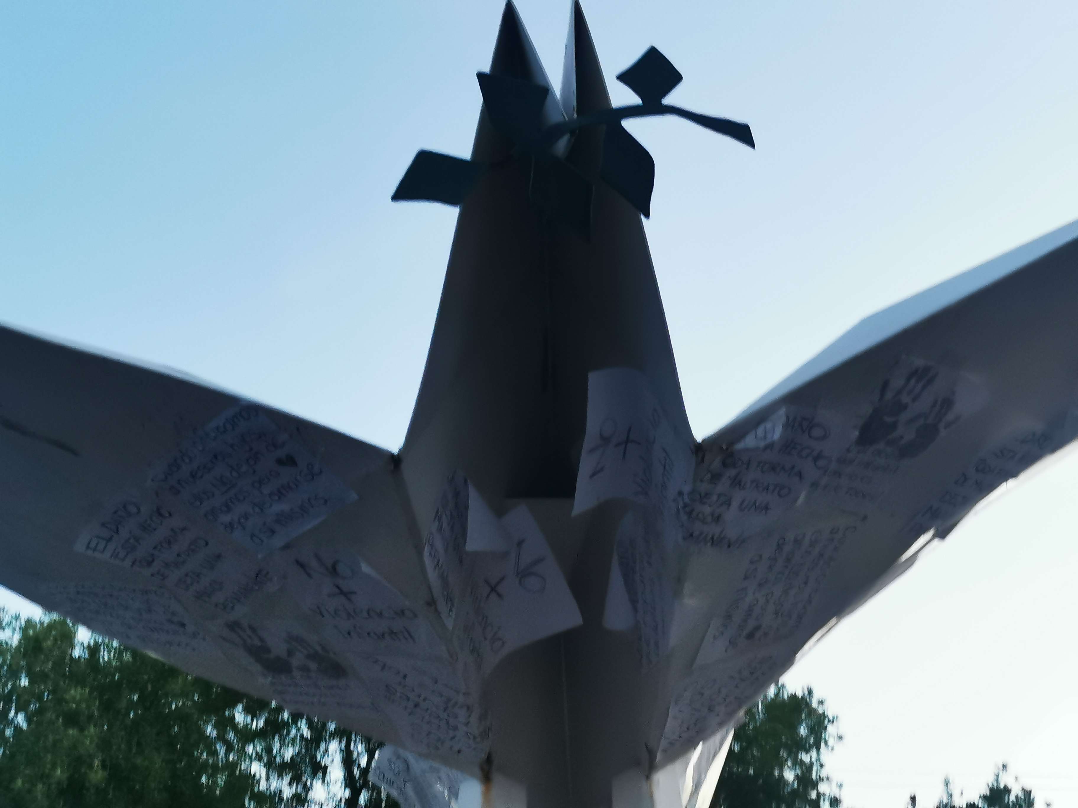 Incontables hojas y cartulinas se pegaron en todo el monumento a la paz ubicado sobre las avenidas Agricultura y Río San Pedro del sector Norte de la zona centro.