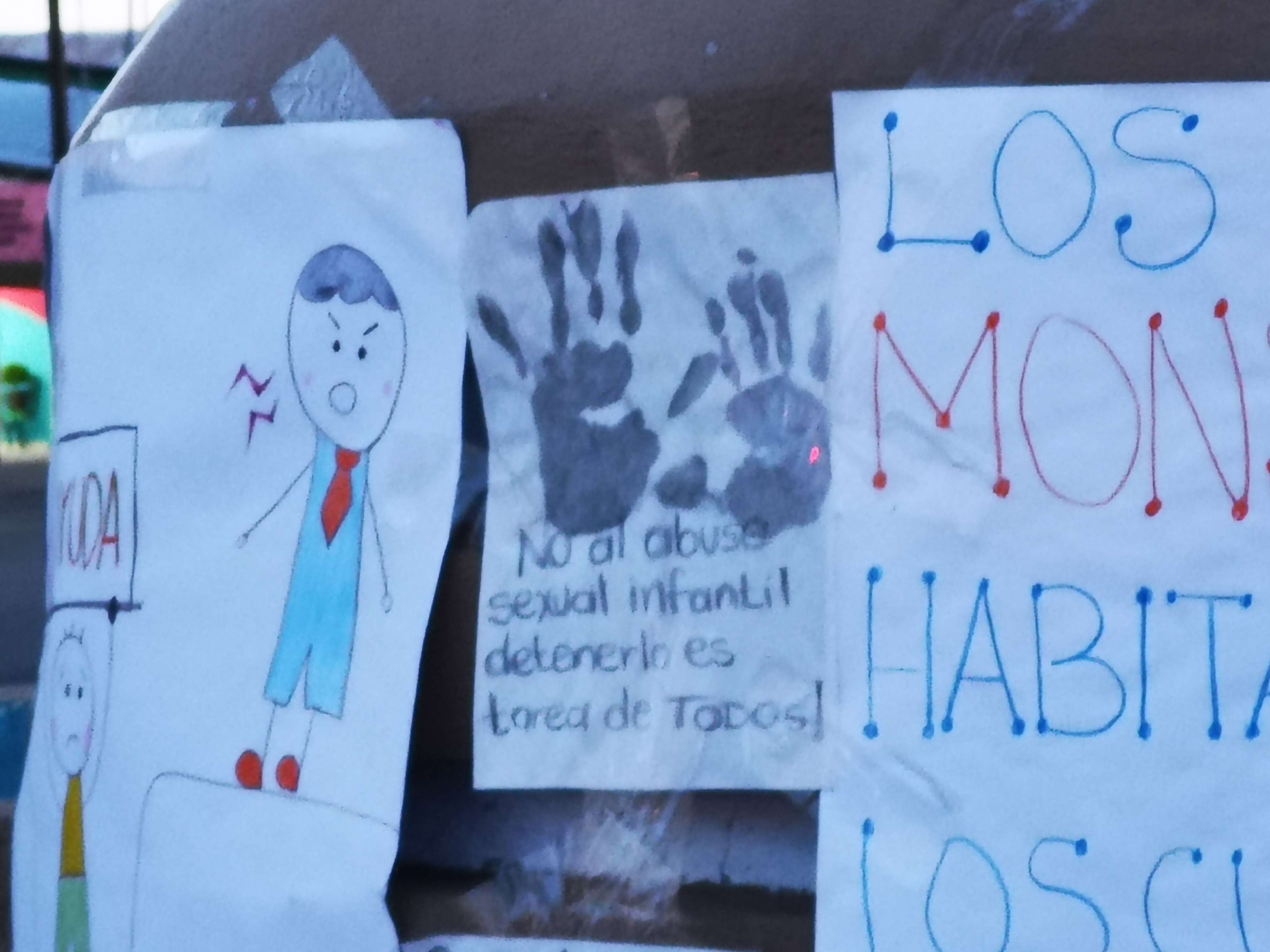 Entre otros mensajes se menciona “es más fácil construir niños fuertes que reparar adultos rotos”, “no al abuso sexual infantil, detenerlo es tarea de todos”, “no más violencia infantil”.