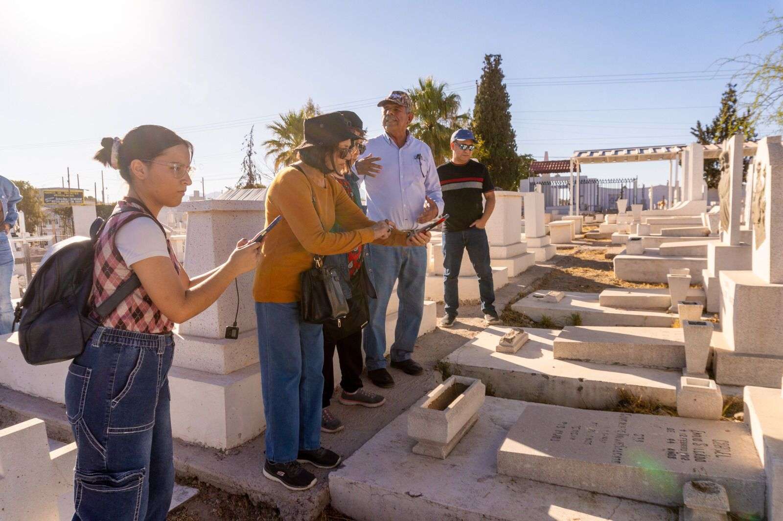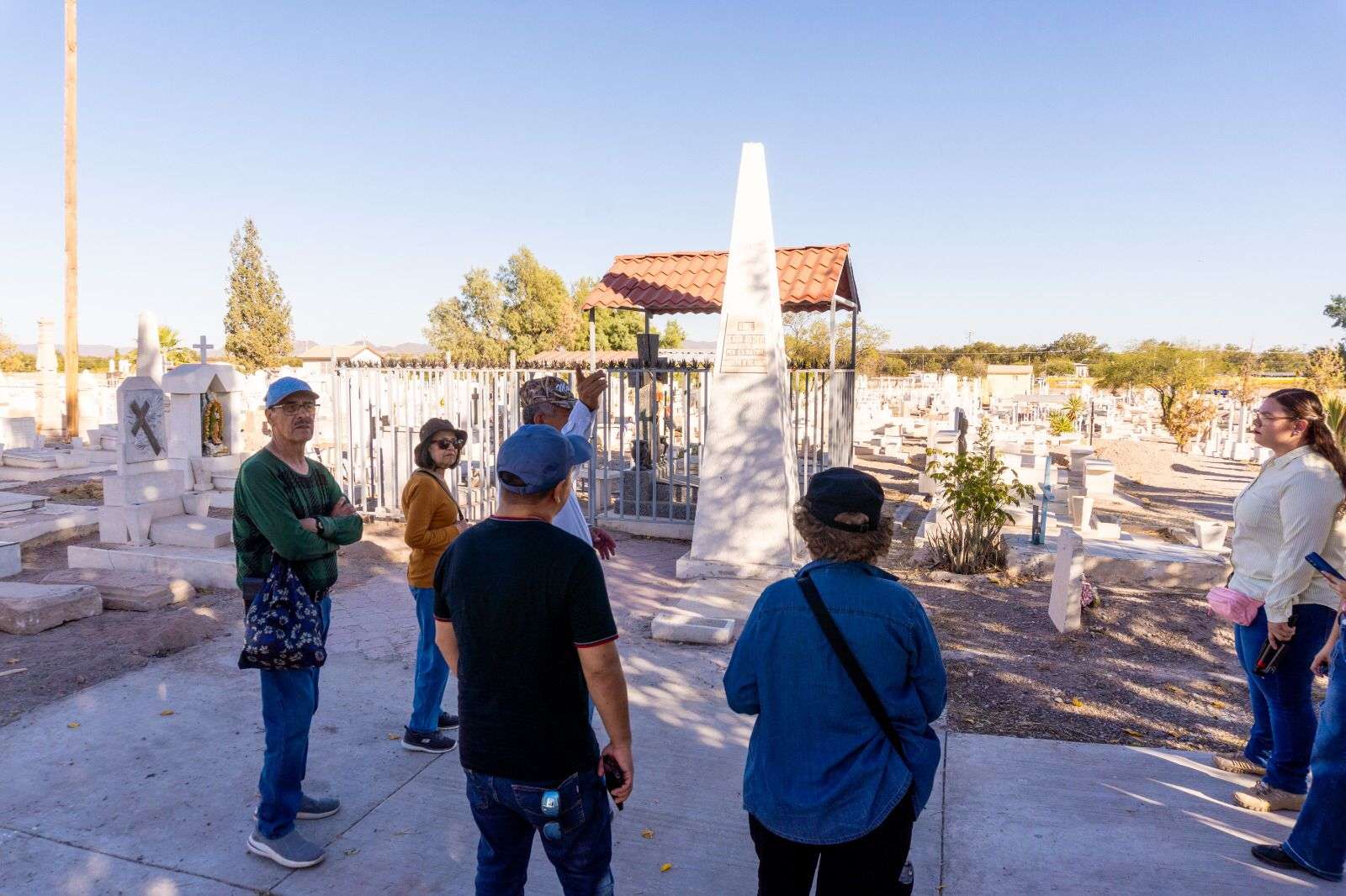 Meoqui.- En Meoqui, se realizó el primer viaje del programa “Un Paseo Entre Tumbas y Flores”, del Festival Almas de Fiesta en Meoqui, implementado por la Alcaldesa Miriam Soto, en el cual, los visitantes pudieron admirar las lápidas labradas en cantera que datan de los años 1700, incluyendo la primera tumba del General Pedro Meoqui, así como del Coronel Tabares y Salgado, Leonés de San Pablo, de Pancho Villa; además, recorrieron dos hectáreas de crisantemos, cempasúchil y mano de león.