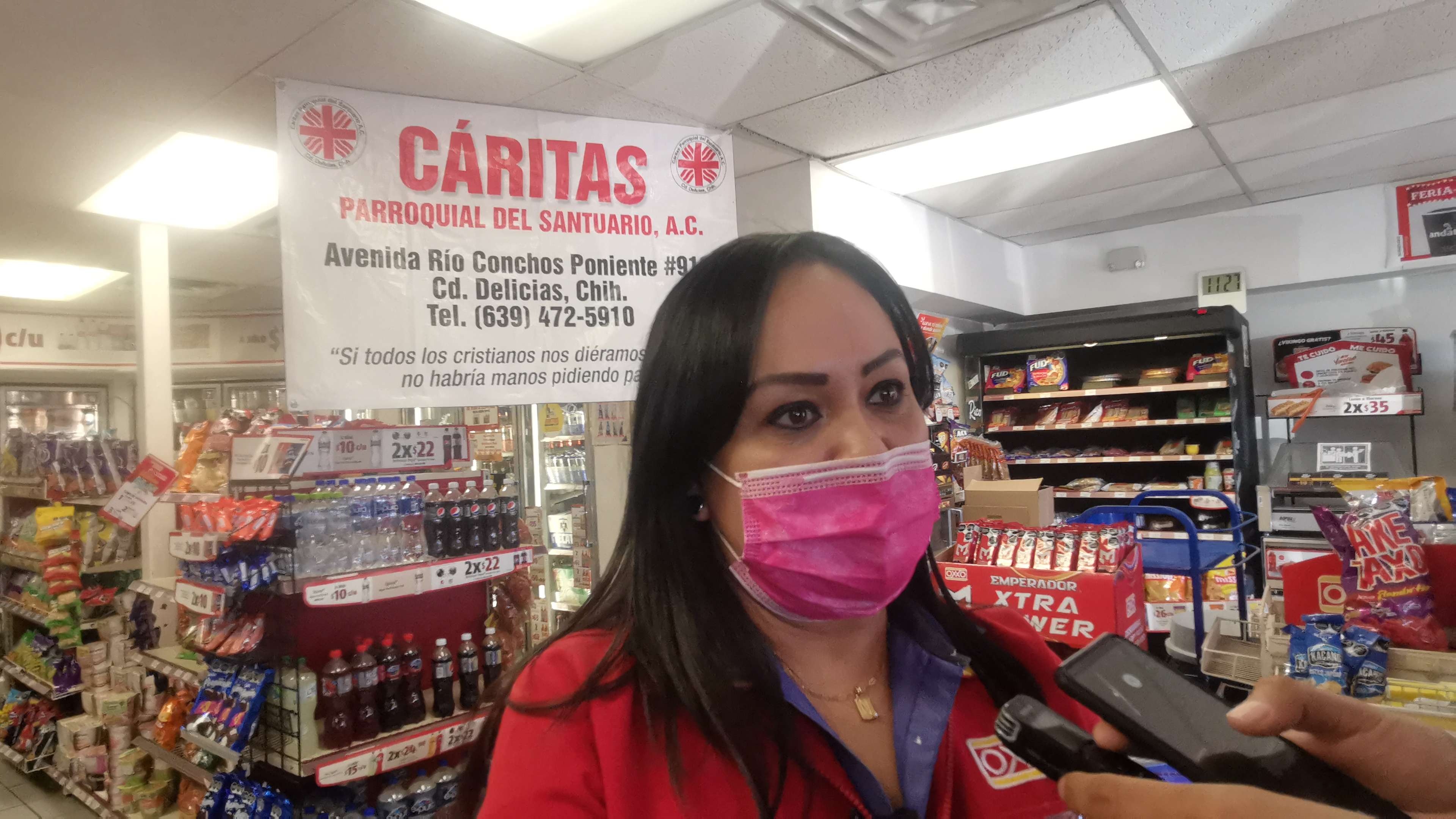 Por su parte, la encargada de Oxxo “libramiento Delicias “, Roció Alderete comentó que cuando se enteró que la donación por redondeo iba a ser para Cáritas del Santuario de Delicias, nos sentimos muy emocionadas porque estos recursos se quedan en la localidad y de inmediato les pasó la notificación a sus compañeras y nos pusimos a trabajar luego luego en ello, dijo.