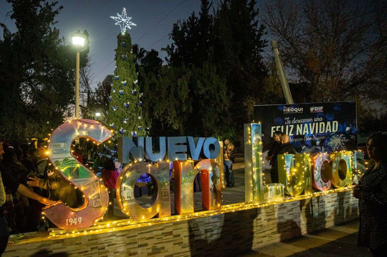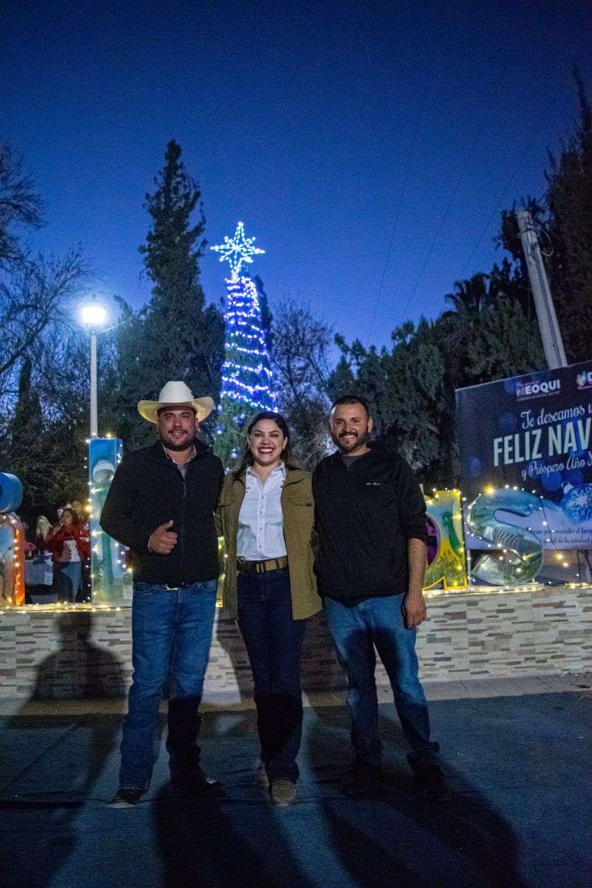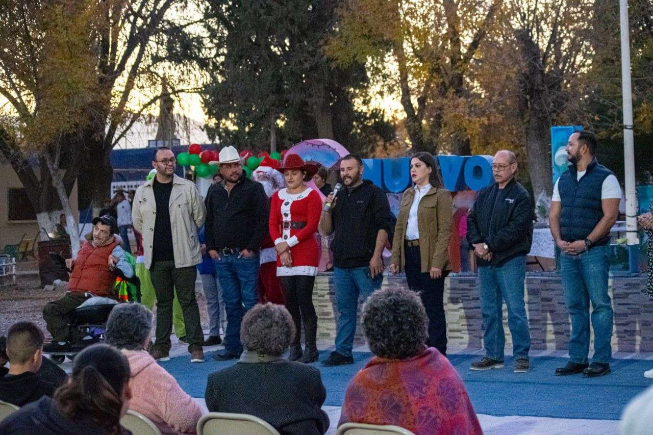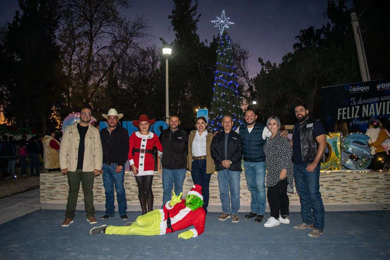 Meoqui, Chih. - En un ambiente de convivencia y unión familiar, la alcaldesa de Meoqui, Miriam Soto, encabezó la posada navideña y el encendido del pino en la comunidad de Nuevo San Lucas, siendo un evento realizado gracias a la suma de esfuerzos entre el DIF Municipal, el regidor Eddy Talamantes, el Ejido Meoqui, el Comité Pro Obras y los propios habitantes de la comunidad.