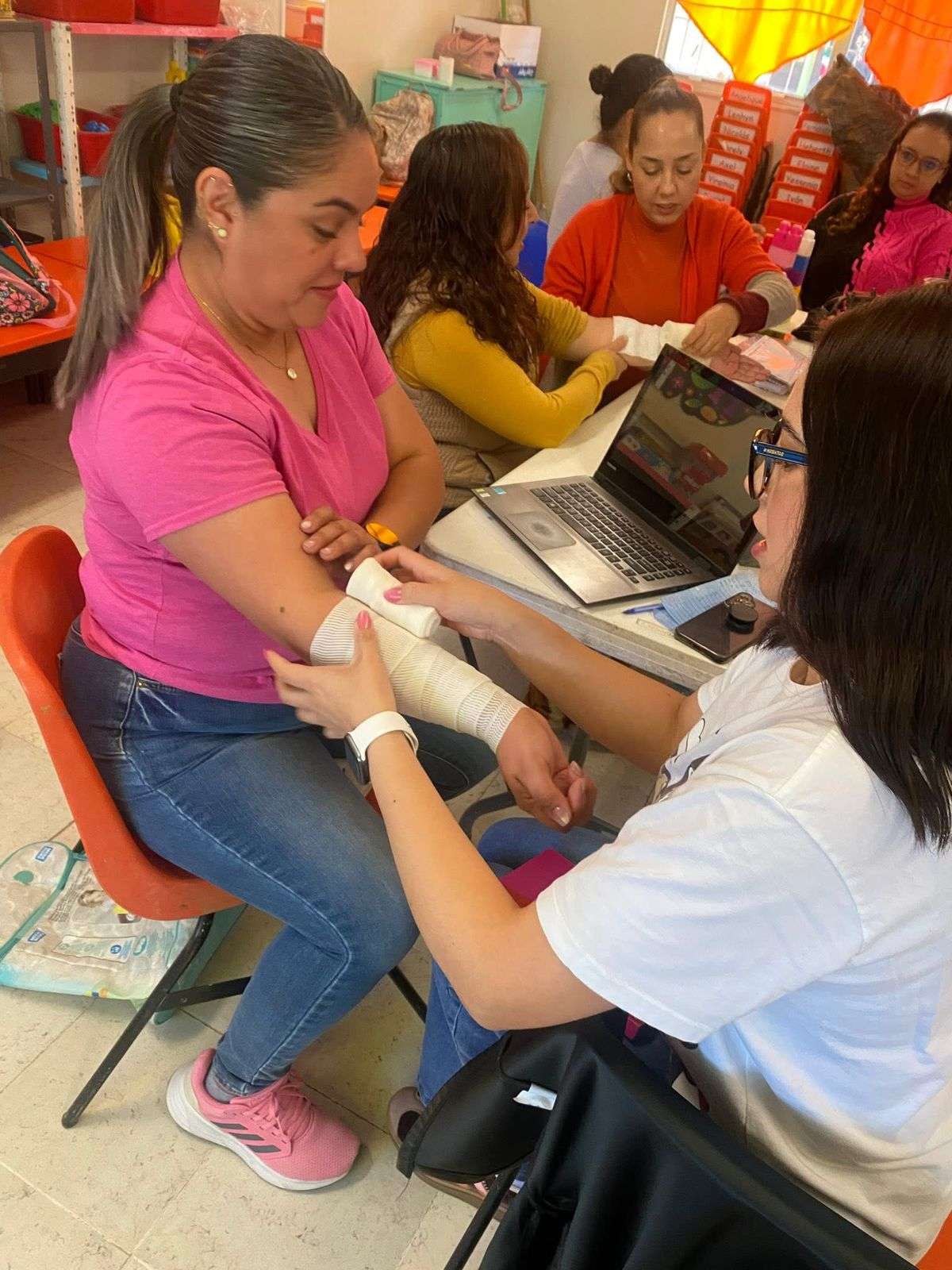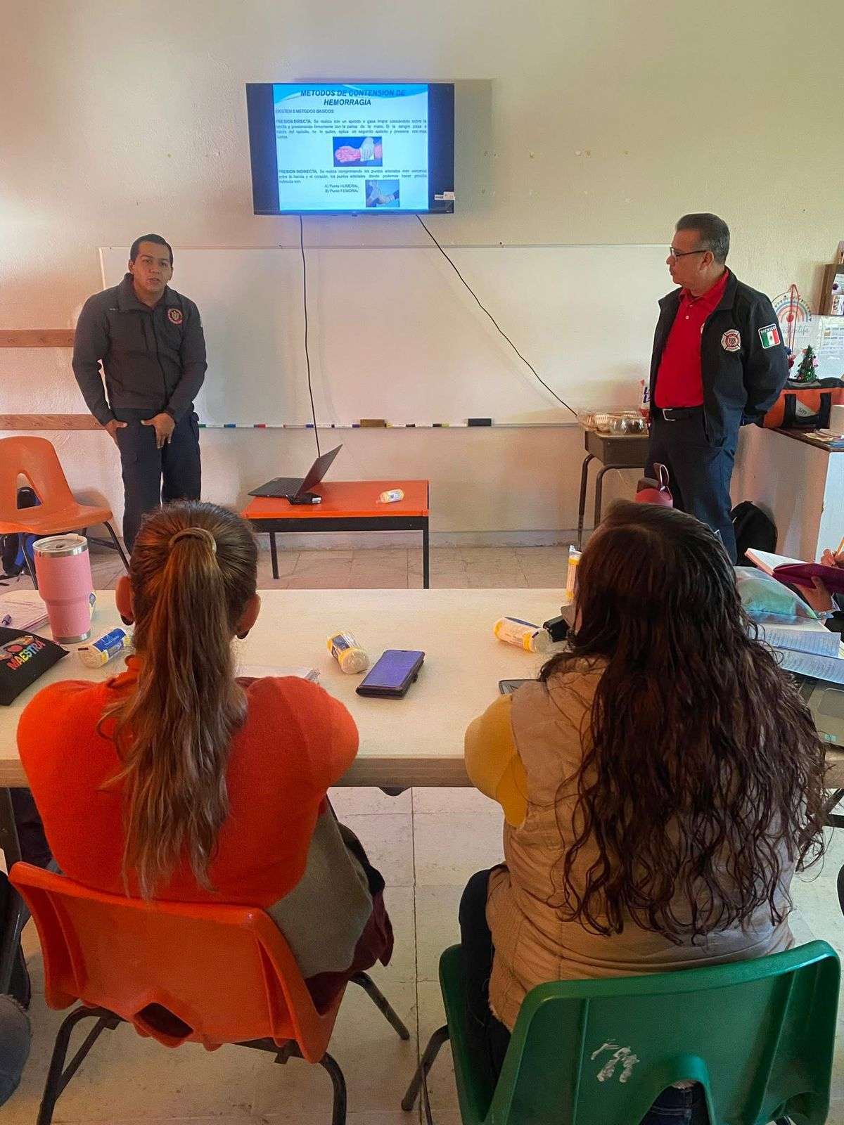 Delicias, Chih. - La Dirección de Seguridad Pública Municipal de Delicias, a través del Departamento de Bomberos y el área de Prevención, impartió una capacitación de Primeros Auxilios nivel básico al personal del jardín de niños Gabriela Mistral de la colonia Revolución. Así lo informó Eduardo Rodríguez, integrante del área de Prevención de Bomberos, quien destacó la importancia de preparar a los planteles educativos ante cualquier eventualidad.