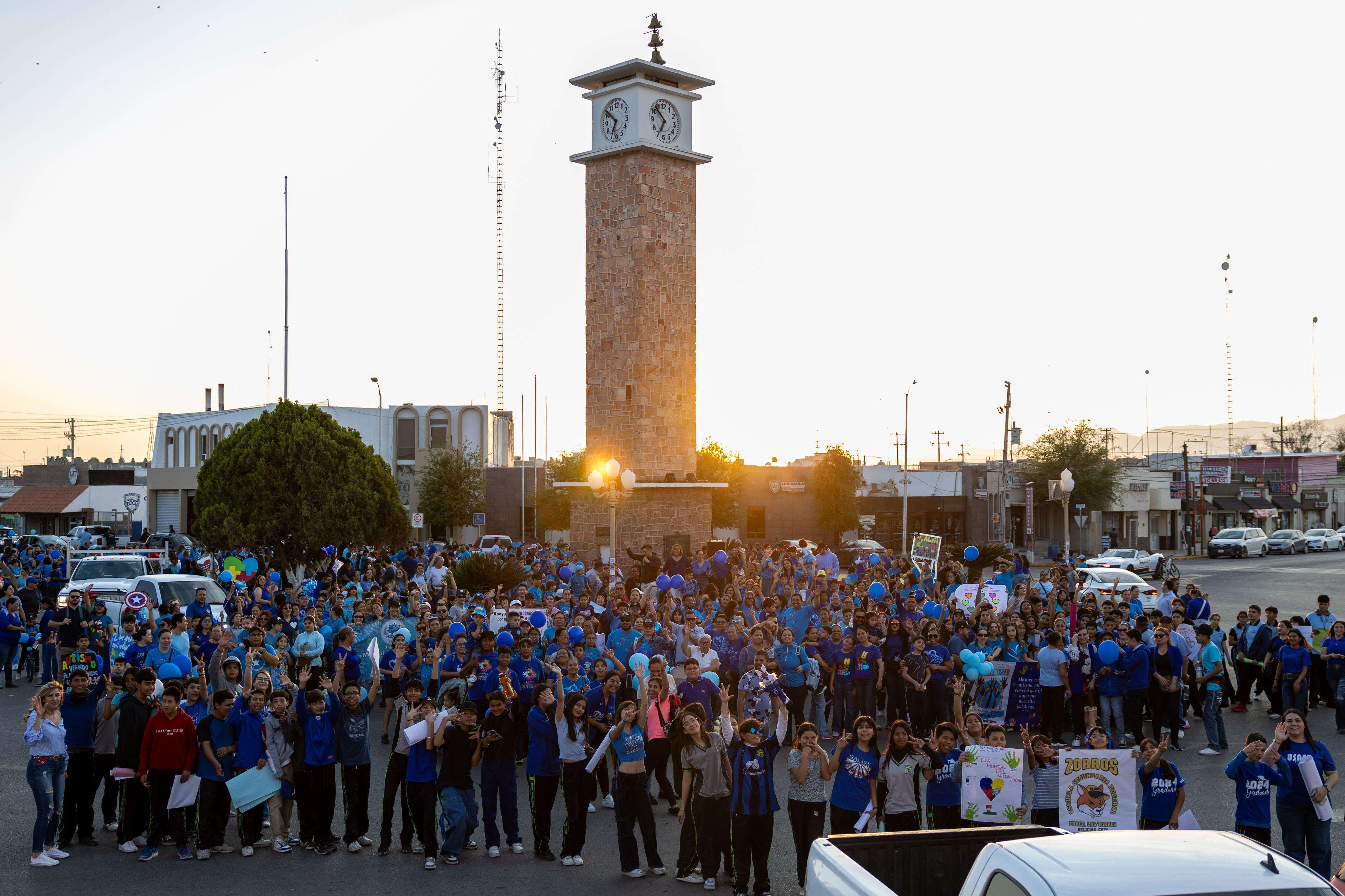Delicias.- Con una emotiva caminata que reunió a decenas de familias vestidas de azul, Delicias se sumó a la conmemoración del Día Mundial de Concienciación sobre el Autismo, como parte del Festival de la Fundación por el 92 aniversario de la ciudad. La actividad fue organizada por el Centro Regional de Autismo y concluyó con la iluminación azul del Reloj Público, símbolo del compromiso del municipio con la inclusión.