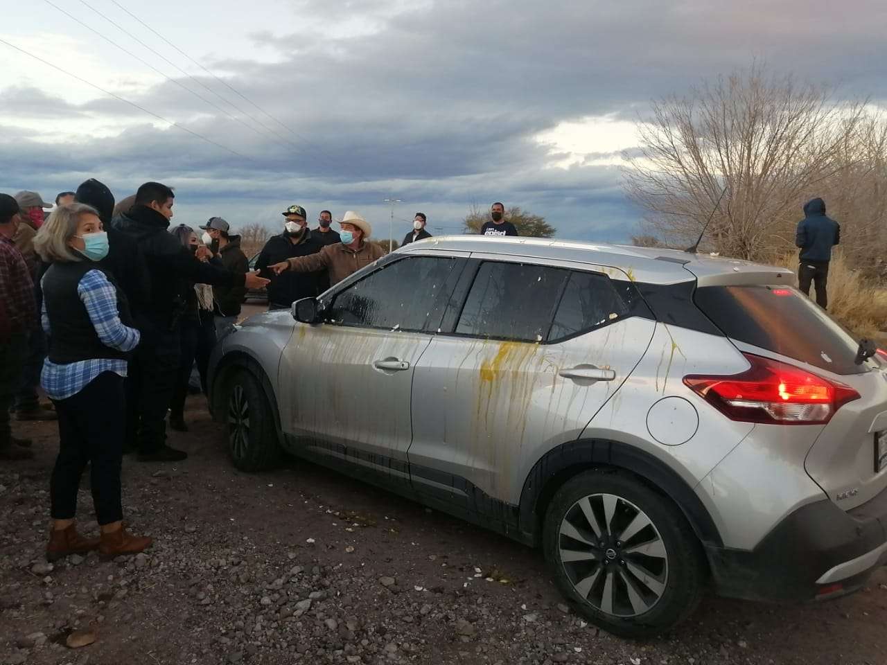 Alrededor de 100 personas impidieron la salida del candidato de la granja, quien aparentemente regresaría a la ciudad de Chihuahua.
