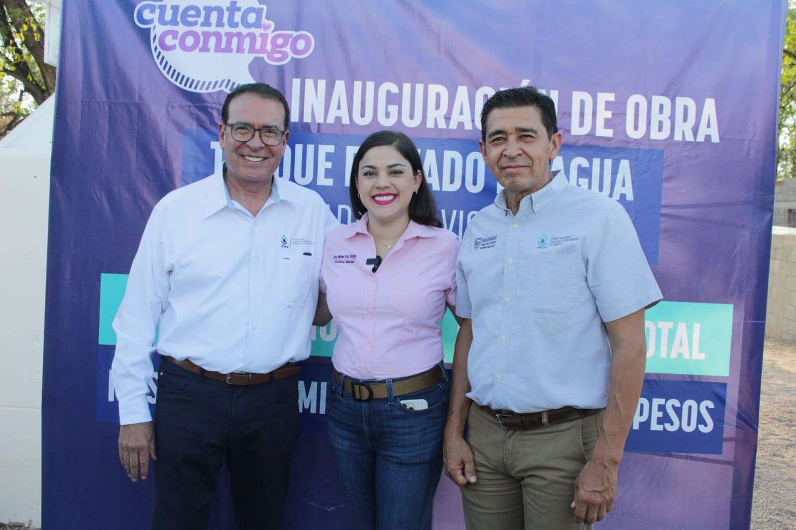 Meoqui.- La alcaldesa de Meoqui Miriam Soto, el Director General de la Junta Central de Aguas Mario Mata, la JMAS y la JRAS inauguraron un nuevo tanque elevado en el seccional de Guadalupe Victoria, con una inversión de más de 4.5 millones de pesos, el cuál beneficiará a más de 500 familias de la zona.