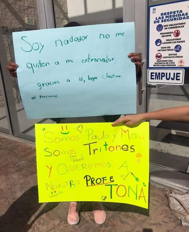 Delicias.- Por primera vez las instalaciones del Polideportivo Bicentenario fueron tomadas, padres de familia de la escuela de Natación "Tritones", se manifestaron afuera para exigir el motivo del despido del profesor Tonatiuh.
