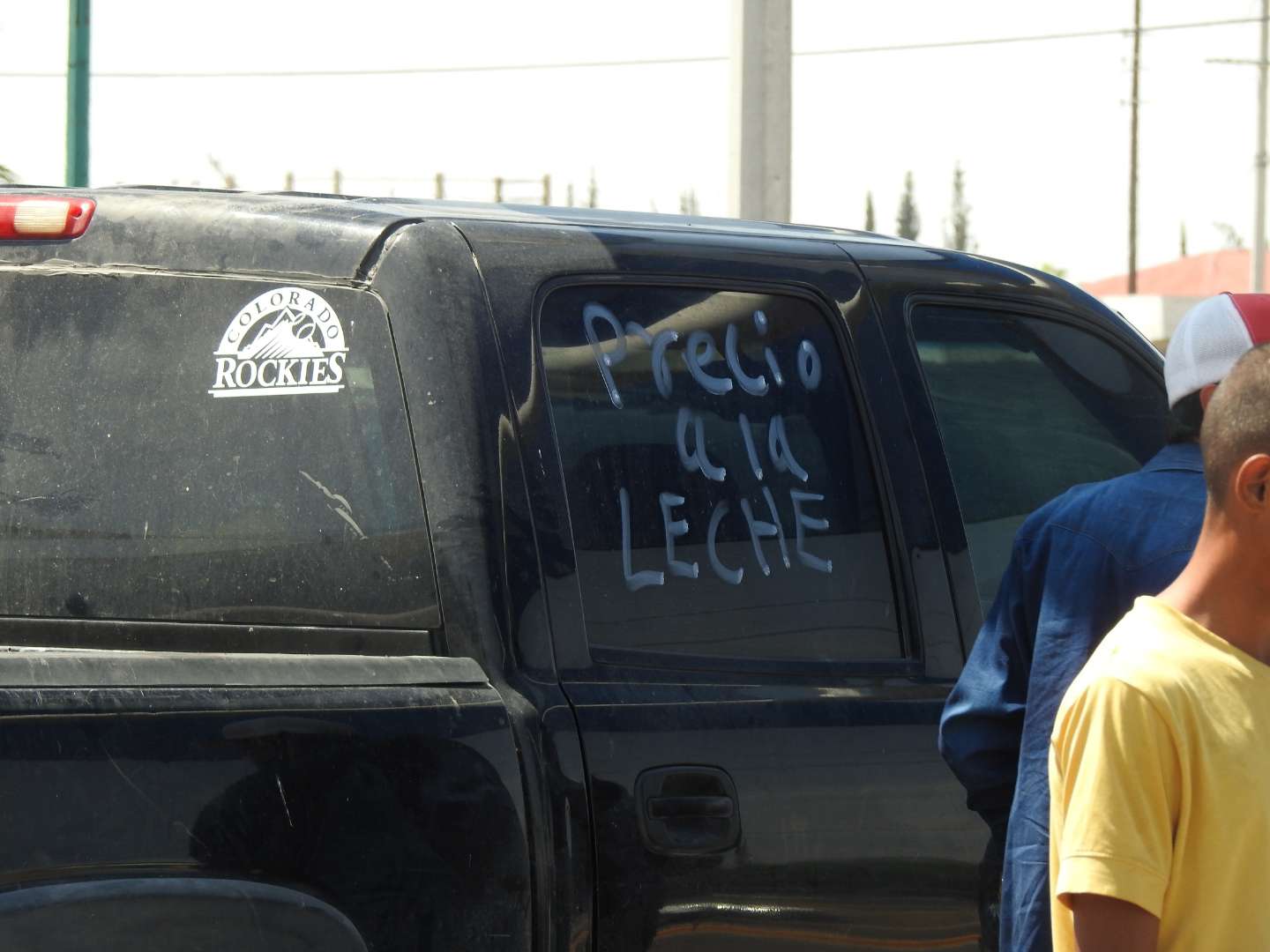 Durante las protestas se pudieron observar vehículos con leyendas de "Precio a la leche", "Productores de leche exigen precio justo por nuestro producto, $10.20".