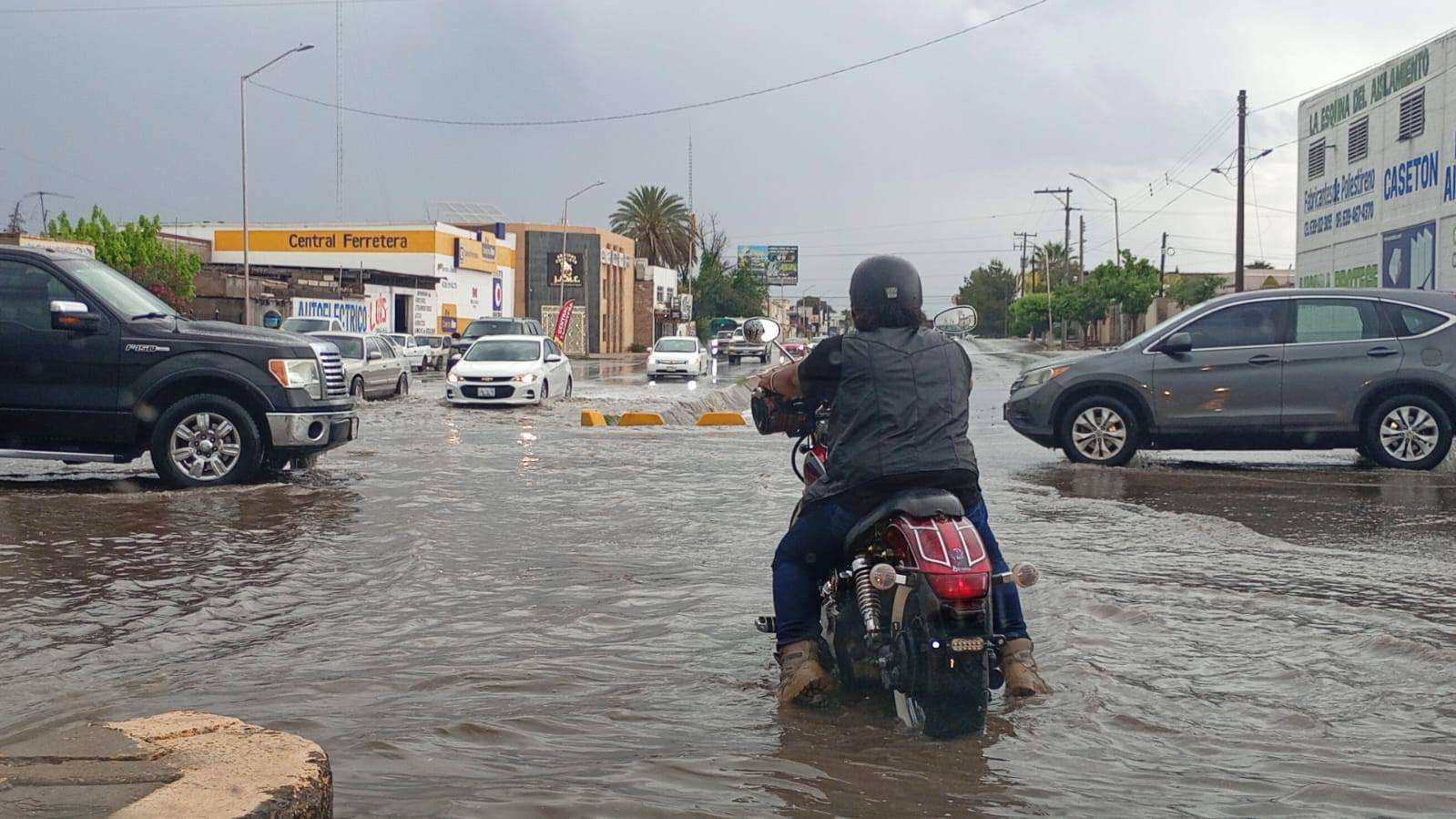 Delicias, Chih. - Una fuerte precipitación acompañada de granizo se registró la tarde de este sábado en Delicias. En cuestión de minutos, la intensidad del agua superó la capacidad de absorción en diversos sectores, lo que generó acumulamientos importantes que dificultaron el tránsito peatonal y vehicular en algunos puntos de la ciudad.