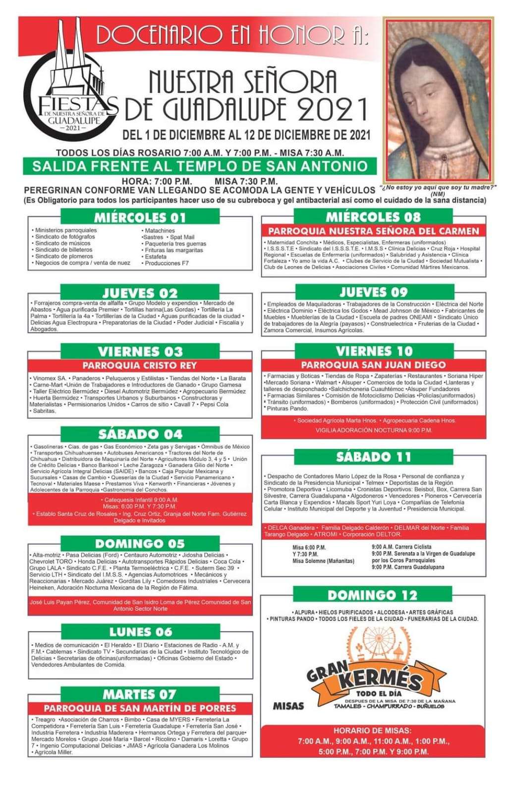 Delicias.- Este año las peregrinaciones y la kermes en honor a la Virgen de Guadalupe se podrán realizar pese a la pandemia.