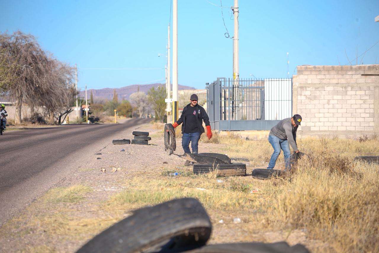 Delicias, Chih. - La mañana de este sábado se llevó a cabo una jornada de limpieza en la avenida Las Moras, específicamente en el tramo ubicado detrás de Cumbres del Deporte, luego de que vecinos del sector reportaran la acumulación de desechos en esta zona. A la actividad se sumaron habitantes del área, integrantes de COPARMEX, personal de Servicios Públicos y regidores del Ayuntamiento.