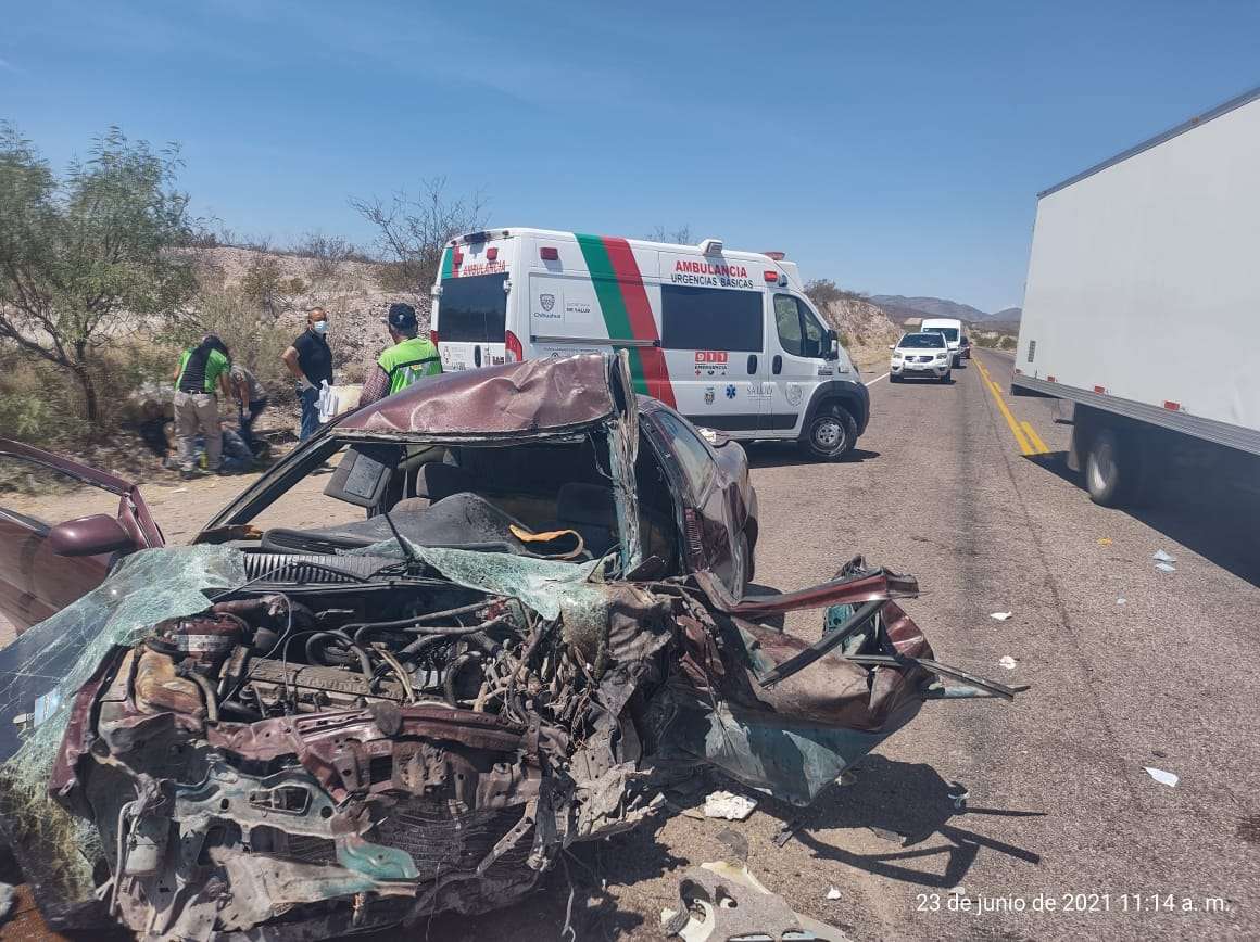 Los tripulantes del automóvil, vivieron de milagro, quedaron atorados entre los fierros retorcidos del vehículo y personal de rescate logró liberarlos para después trasladarlo a un hospital en Delicias.