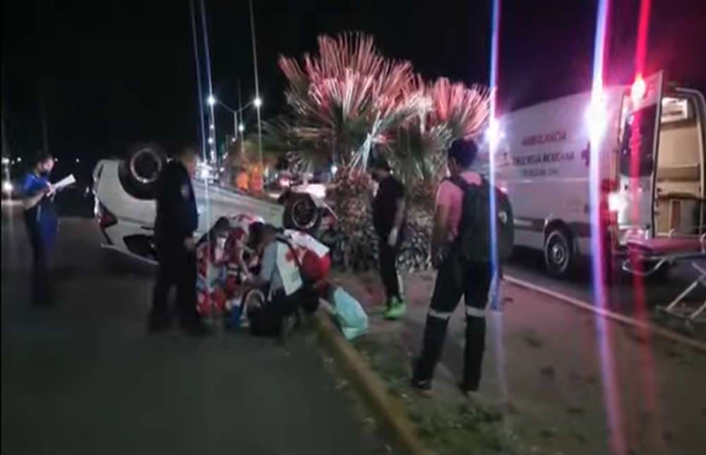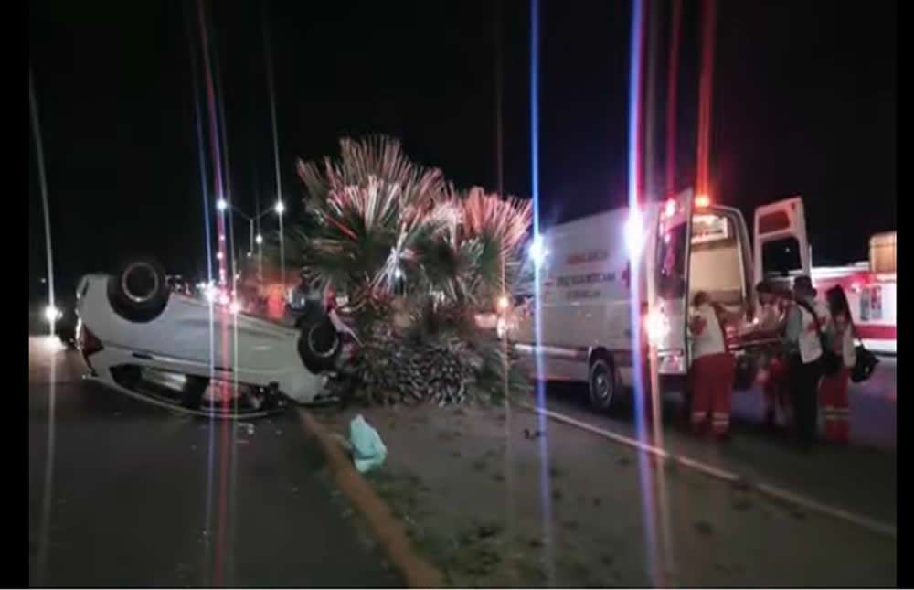 Delicias.- Se presentó una volcadura de un automóvil en Avenida Solidaridad, en hechos ocurridos en la avenida Solidaridad frente al fraccionamiento Monte Albán.