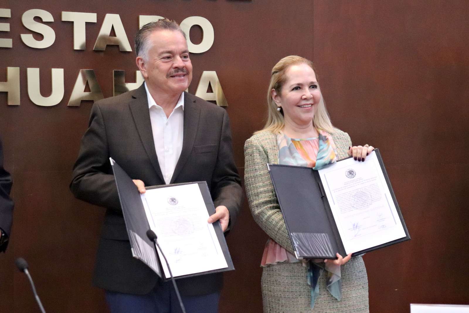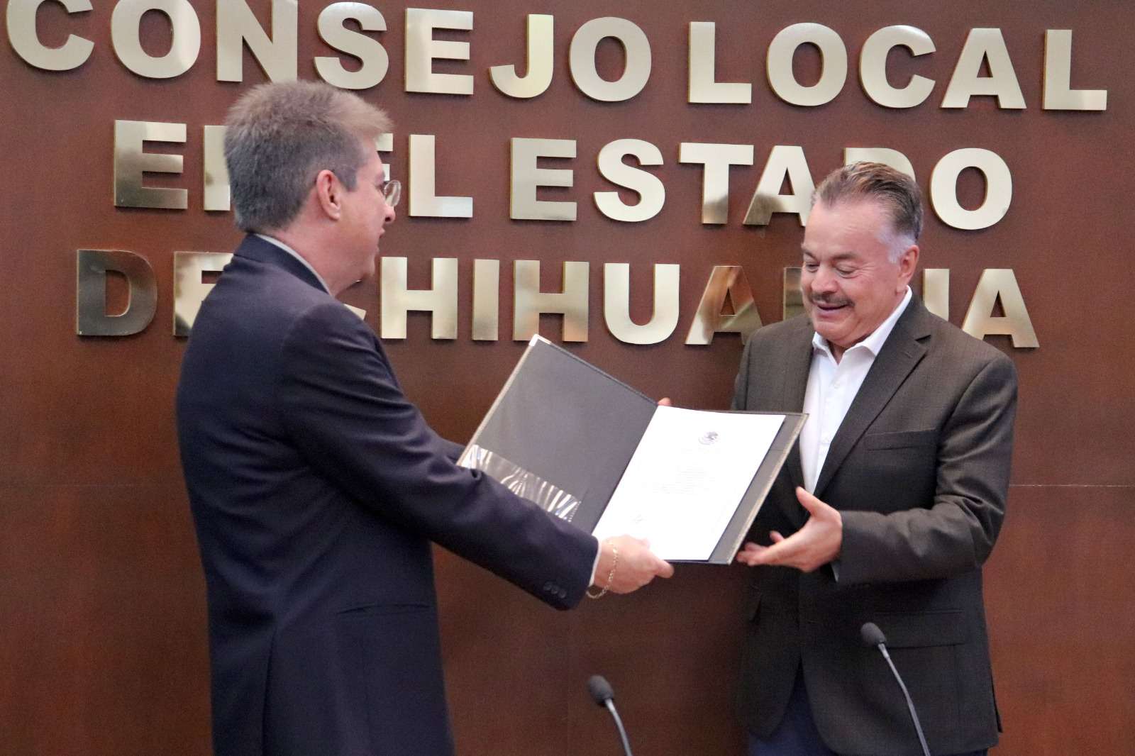 Chihuahua.- Mario Vázquez, recibió la constancia como Senador de la República en compañía de su suplente Adriana Fuentes; asegurando que honrará la confianza depositada en él por cientos de miles de chihuahuenses.