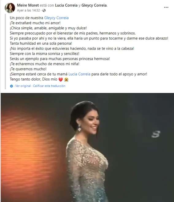 La organización de Miss Brasil Continentes Unidos también utilizó las redes sociales para lamentar la muerte de la modelo. La nota de pesar afirma que el recuerdo de la sonrisa del brasileño ayudará a mitigar el dolor de la familia.