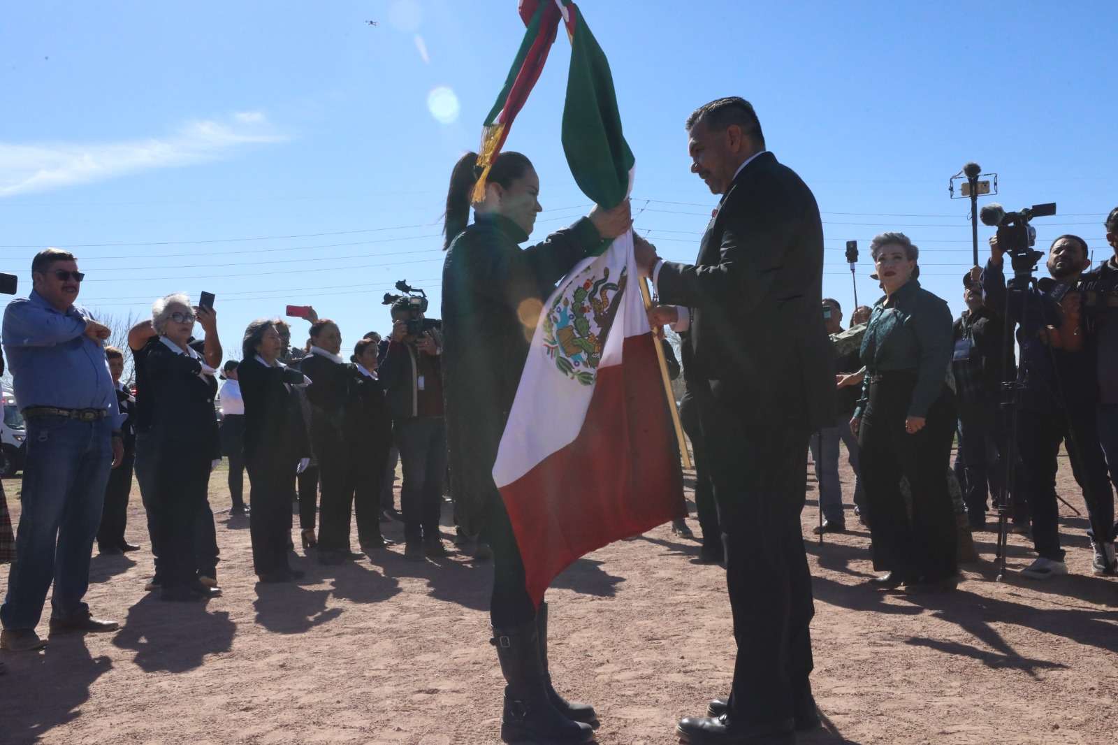 Indicó que bajo el liderazgo y ejemplo de la Presidenta Claudia Sheinbaum Pardo, quien está demostrando no solamente tener la capacidad y la inteligencia, sino también el temple y la fortaleza para encabezar el destino de este país en tiempos complejos, debemos de recordar que la bandera simboliza a cada una de las y los mexicanos.