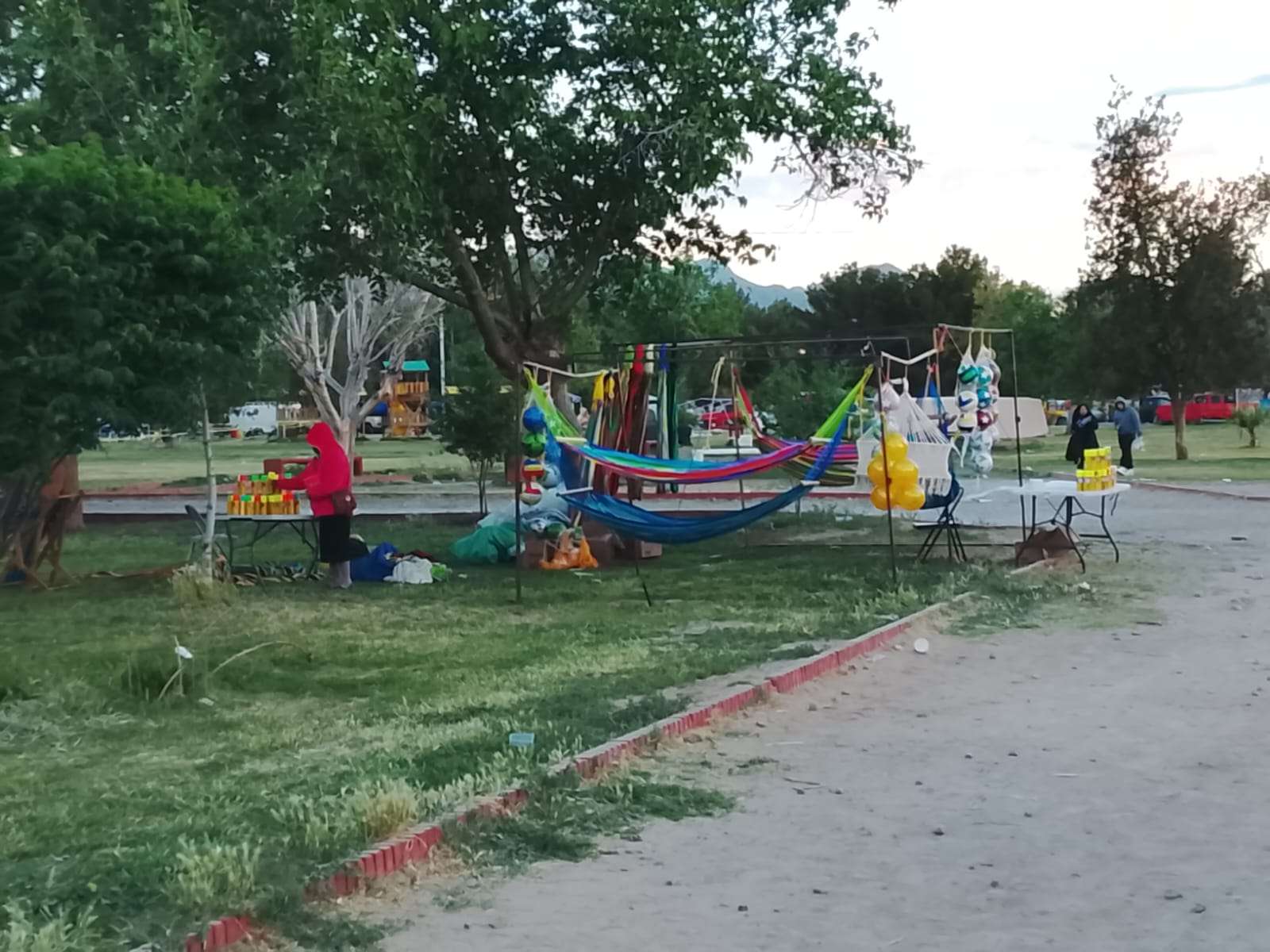 En el lugar también se observa la presencia de comerciantes ambulantes, quienes desde temprano se instalaron ofreciendo alimentos preparados, bebidas, así como artículos recreativos como globos, pelotas y juegos, contribuyendo al ambiente familiar que caracteriza esta celebración.