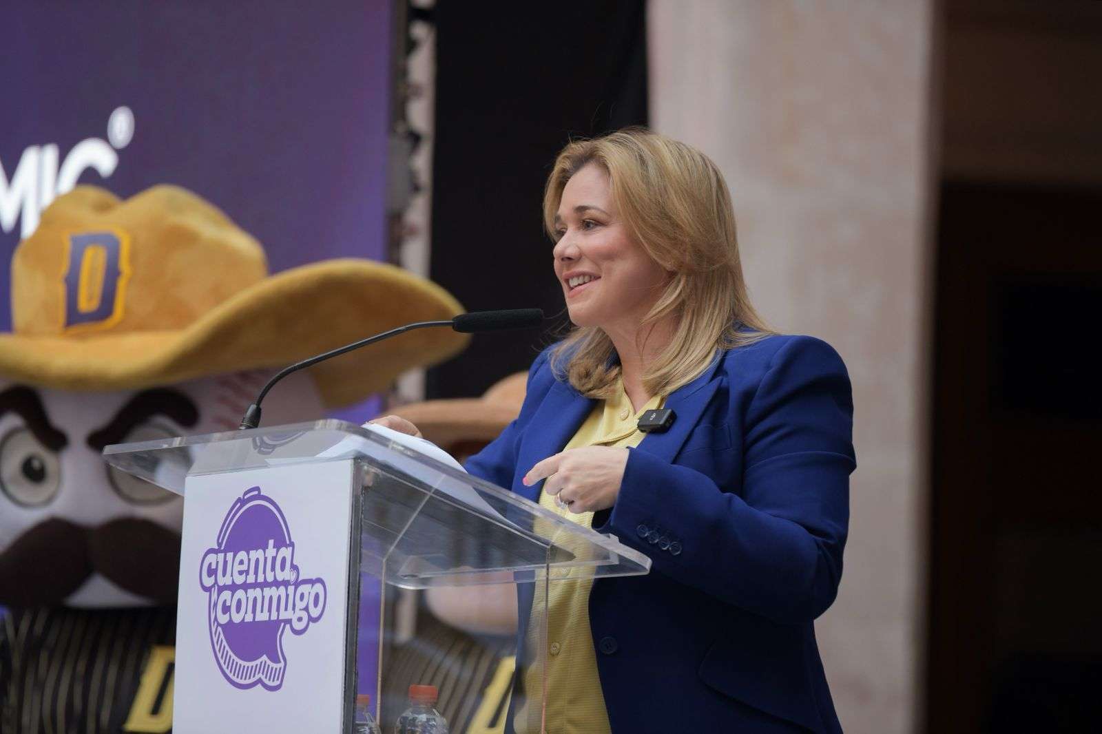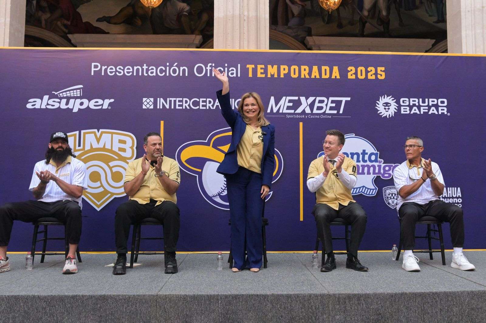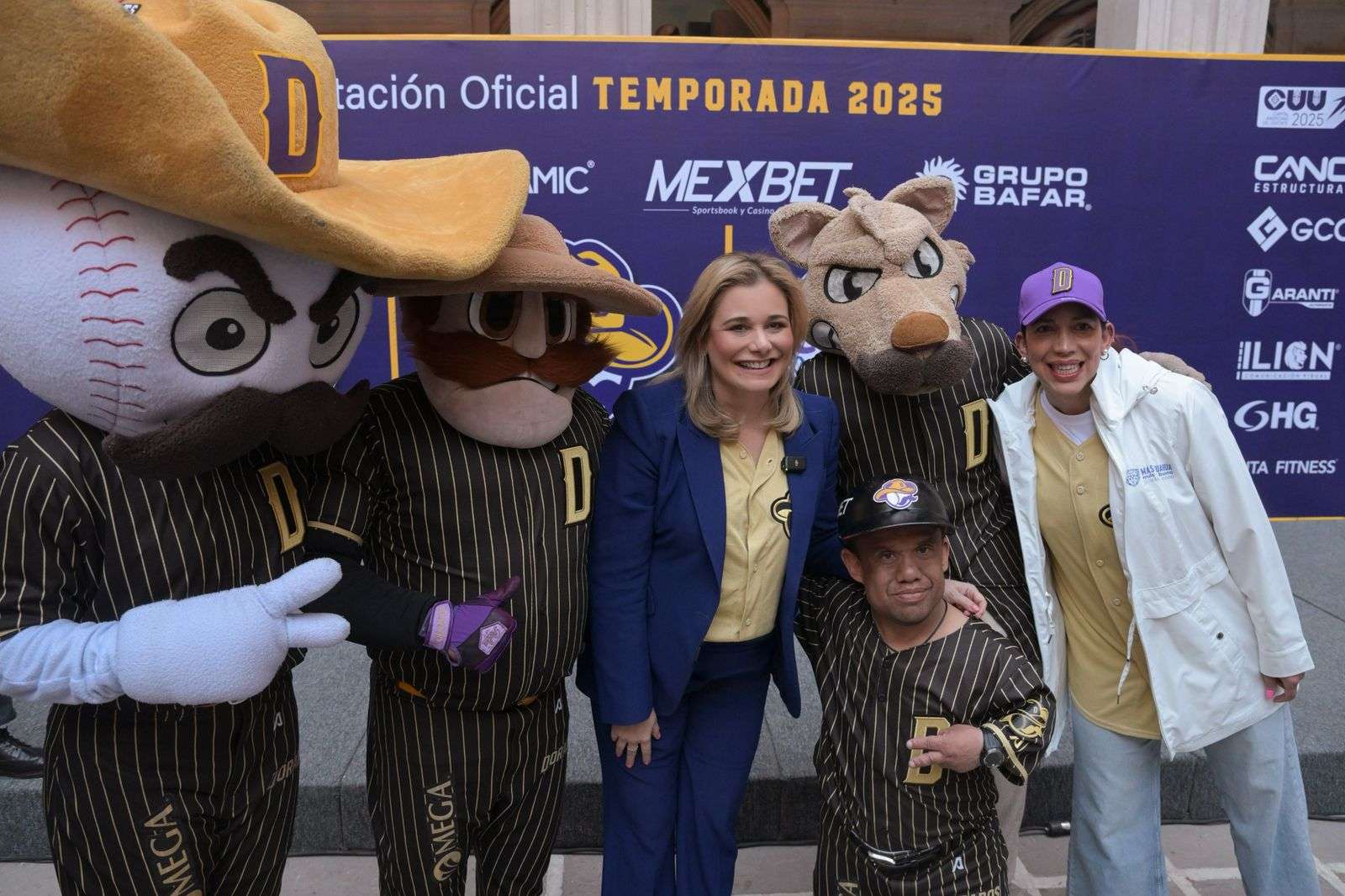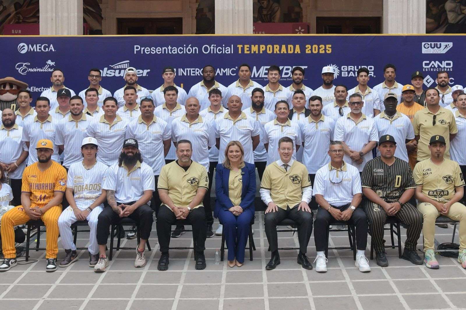 Chihuahua.- La gobernadora Maru Campos, acompañó al staff y jugadores del equipo Dorados de Chihuahua, en la presentación oficial de la temporada 2025, de la Liga Mexicana de Beisbol (LMB).