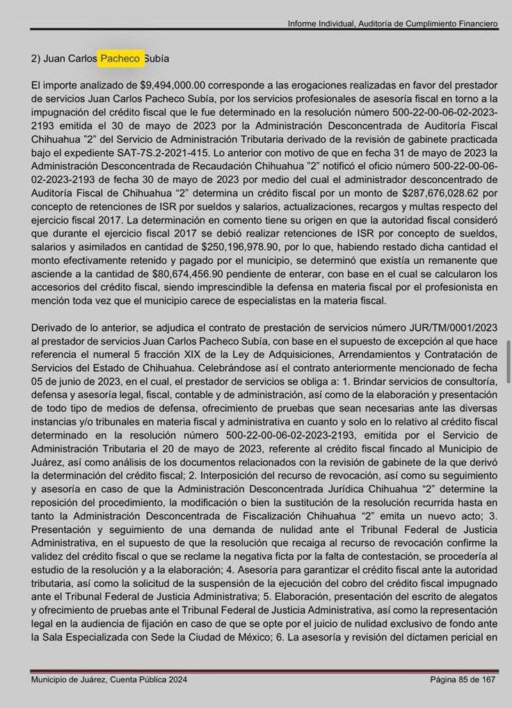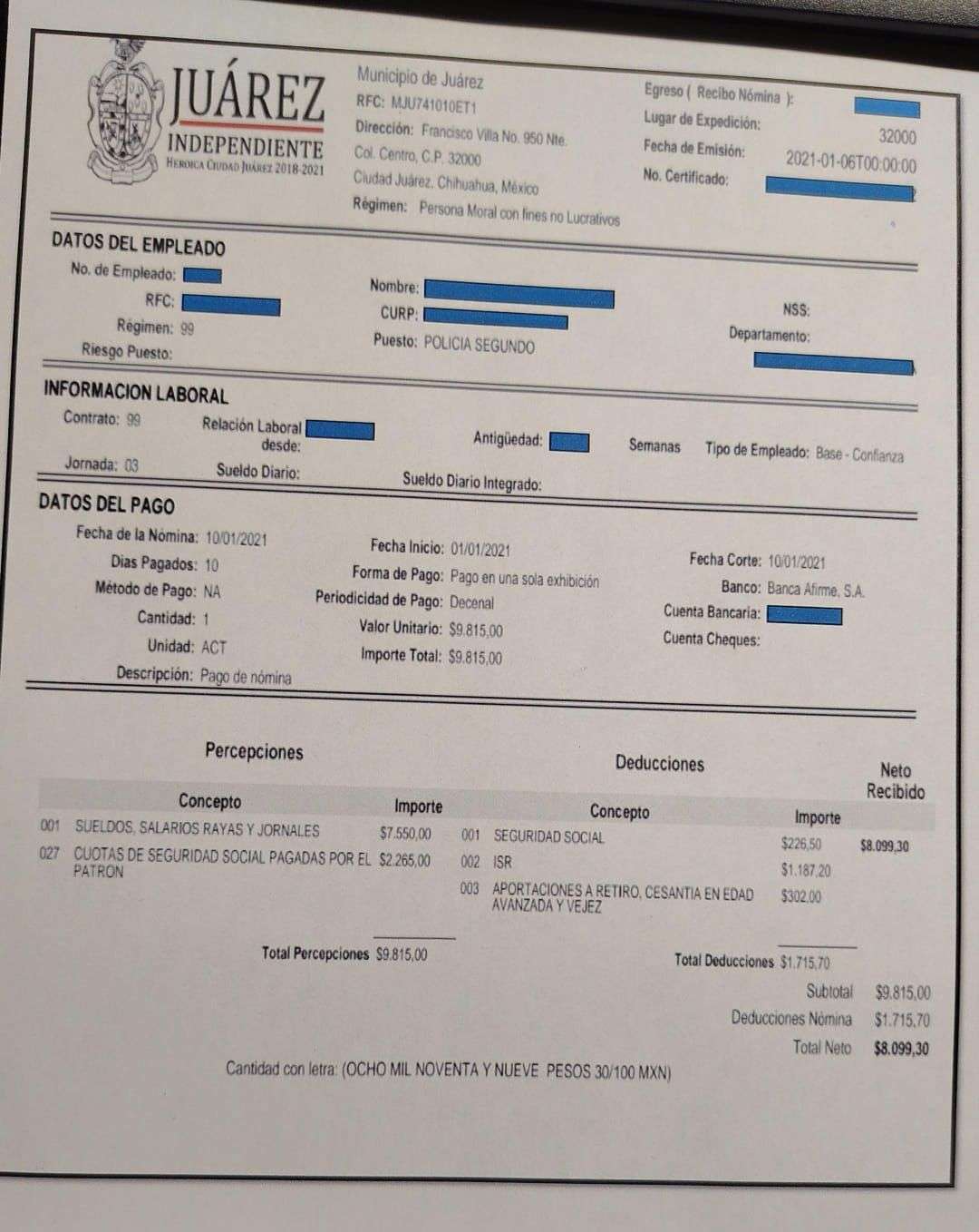 Ciudad Juárez.– El dirigente local del Partido Acción Nacional (PAN), Ulises Pacheco, acusó al presidente municipal Cruz Pérez Cuéllar de no transparentar el destino de más de 114 millones de pesos correspondientes al Impuesto Sobre la Renta (ISR) que, según afirmó, fueron descontados a trabajadores municipales pero no enterados al Servicio de Administración Tributaria (SAT).