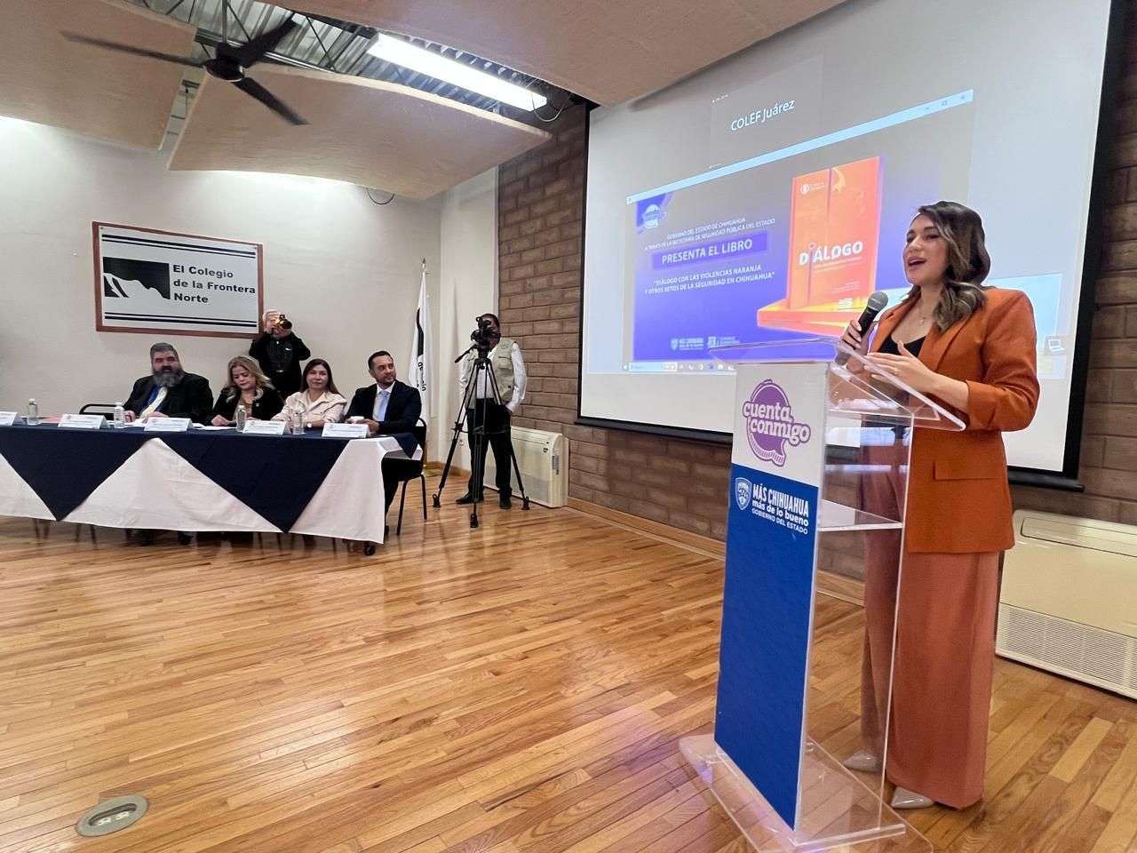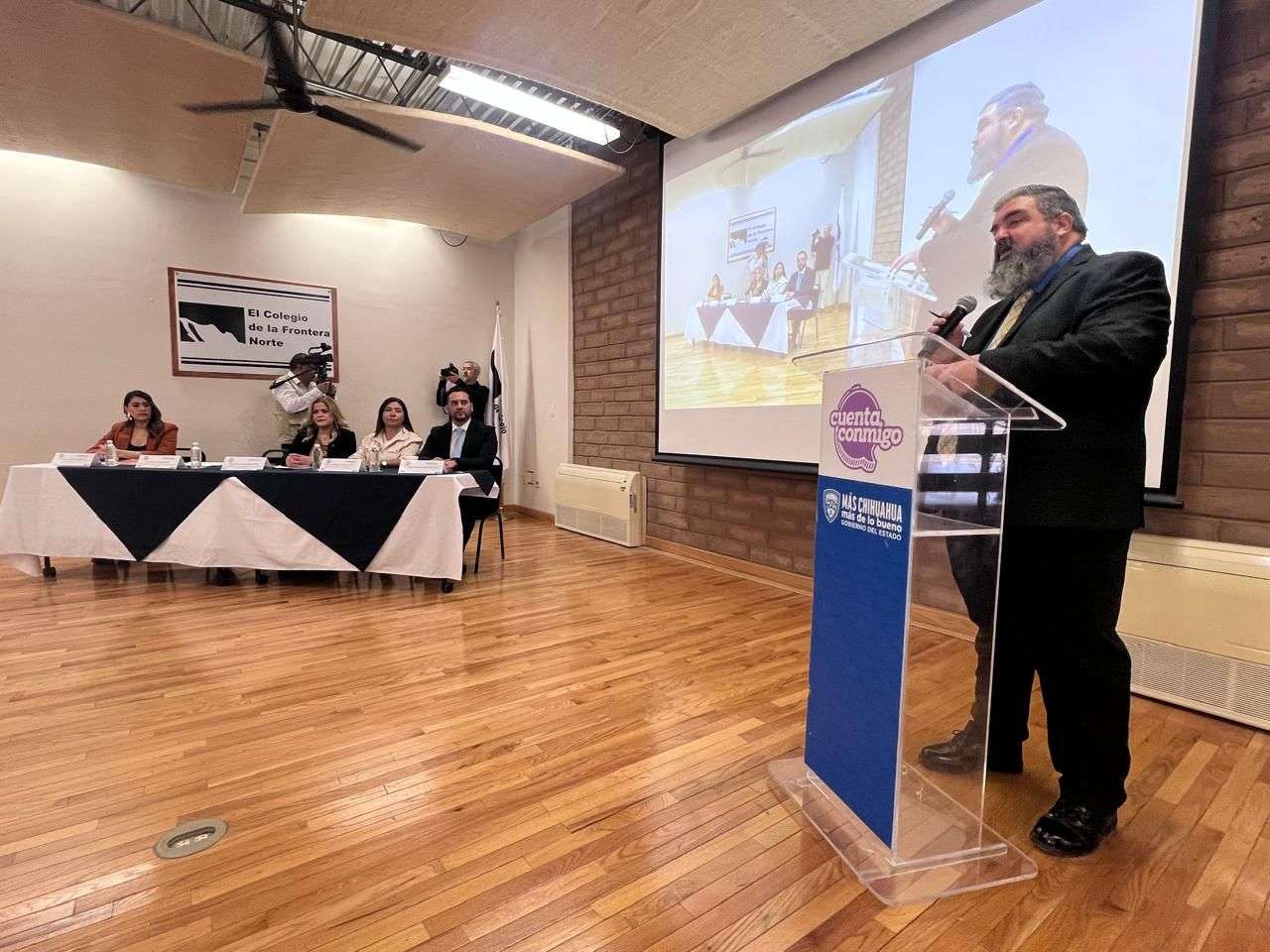 Durante la presentación, participaron Alejandro Brugués, director del Colegio de la Frontera Norte; Rosa Isela Gaytán Díaz, Subsecretaria de Participación Ciudadana y Prevención del Delito; además de personal de la Fiscalía General del Estado y la Secretaría de Seguridad Pública del Estado.