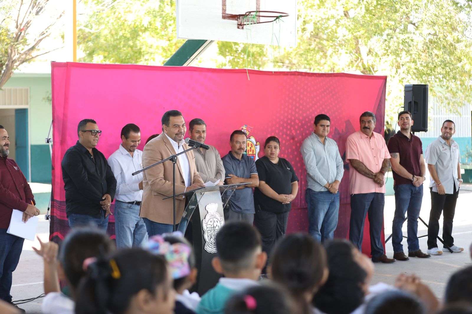 Ciudad Juárez.- En el marco de la entrega de obras de rehabilitación en la Escuela Primaria Aziz Rohaim, el Presidente Municipal, Cruz Pérez Cuéllar, adelantó que el próximo año se destinará un fondo especial de 100 millones de pesos exclusivamente para escuelas primarias, con el fin de garantizar que más planteles resulten beneficiados.