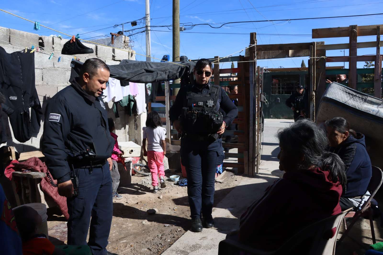 Ciudad Juárez.- En un acto humanitario elementos de la Secretaría de Seguridad Pública Municipal pertenecientes al Distrito Valle, acudieron a brindar apoyo a una familia de escasos recursos, con la entrega de una despensa básica.