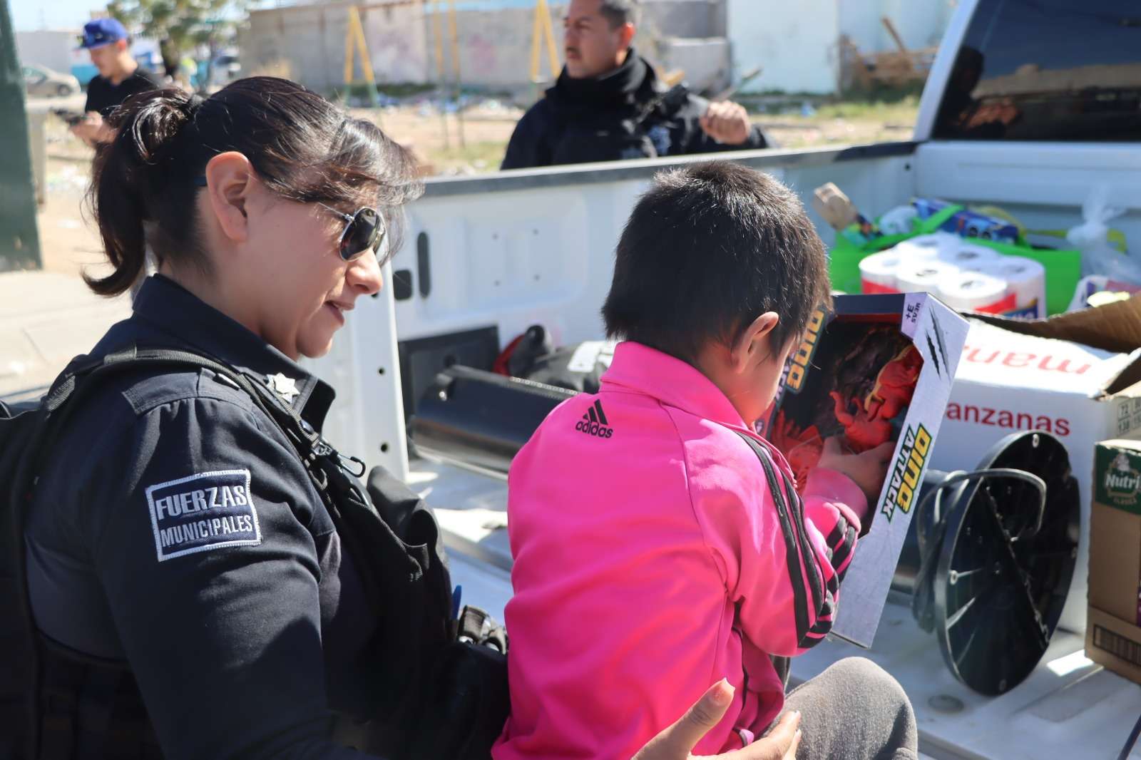 Motivados por su vocación de servicio y utilizando recursos propios, los agentes adquirieron varios productos básicos, además llevaron juguetes, pastel y pizzas para uno de los pequeños que cumplió años recientemente.