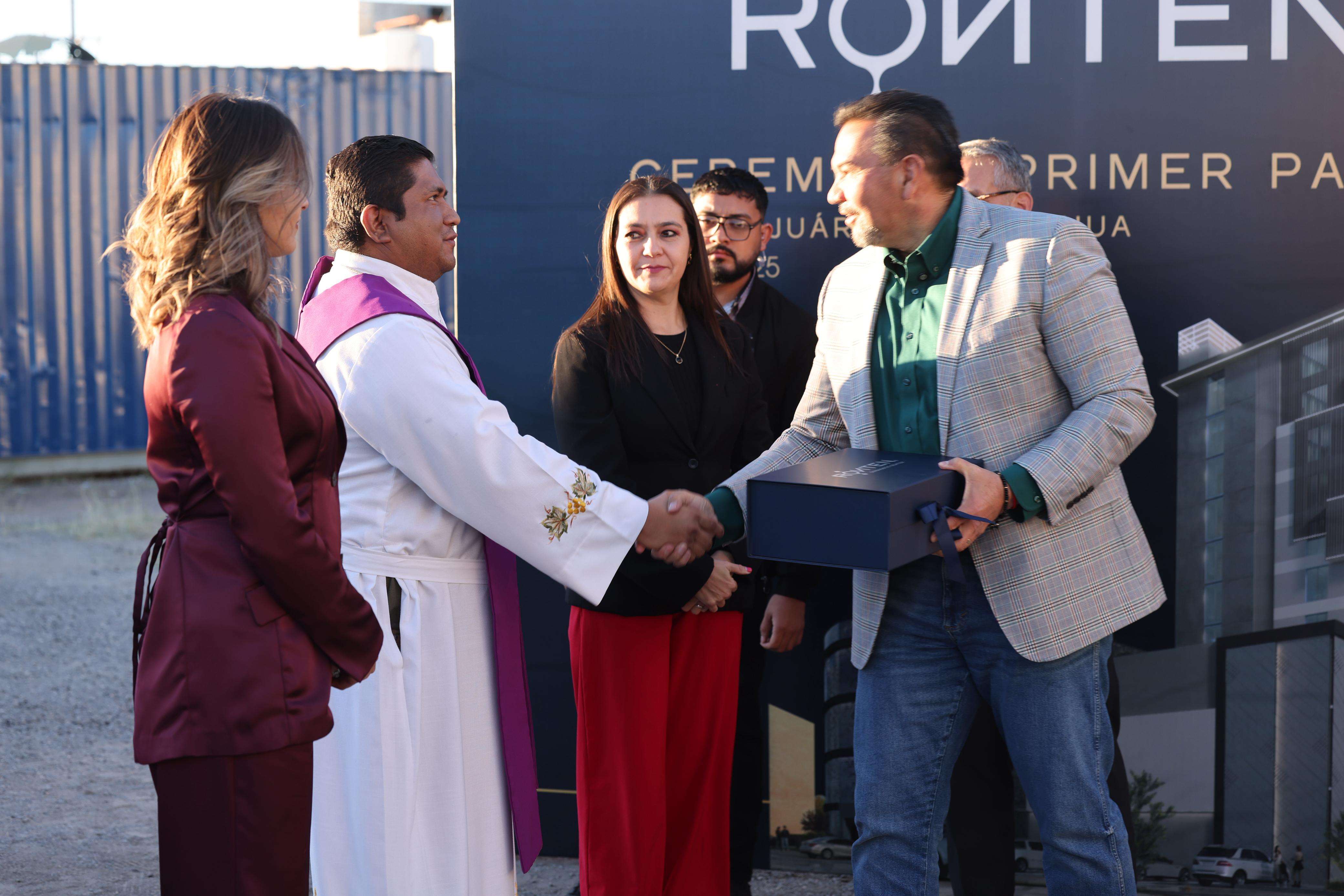 Las autoridades presentes en la ceremonia fueron entre ellas el Presidente Municipal de Ciudad Juárez, Cruz Pérez Cuéllar; la directora general de Desarrollo Económico del Municipio, Tania Maldonado; la directora general de Ronten Diagnostic Center, Jessica Chávez; el arquitecto Gerardo Gutiérrez, presidente del consejo de administración; el arquitecto Ricardo Molina, director del proyecto, y el sacerdote Juan Manuel Sánchez Vaca, encargado de ofrecer la bendición del desarrollo.