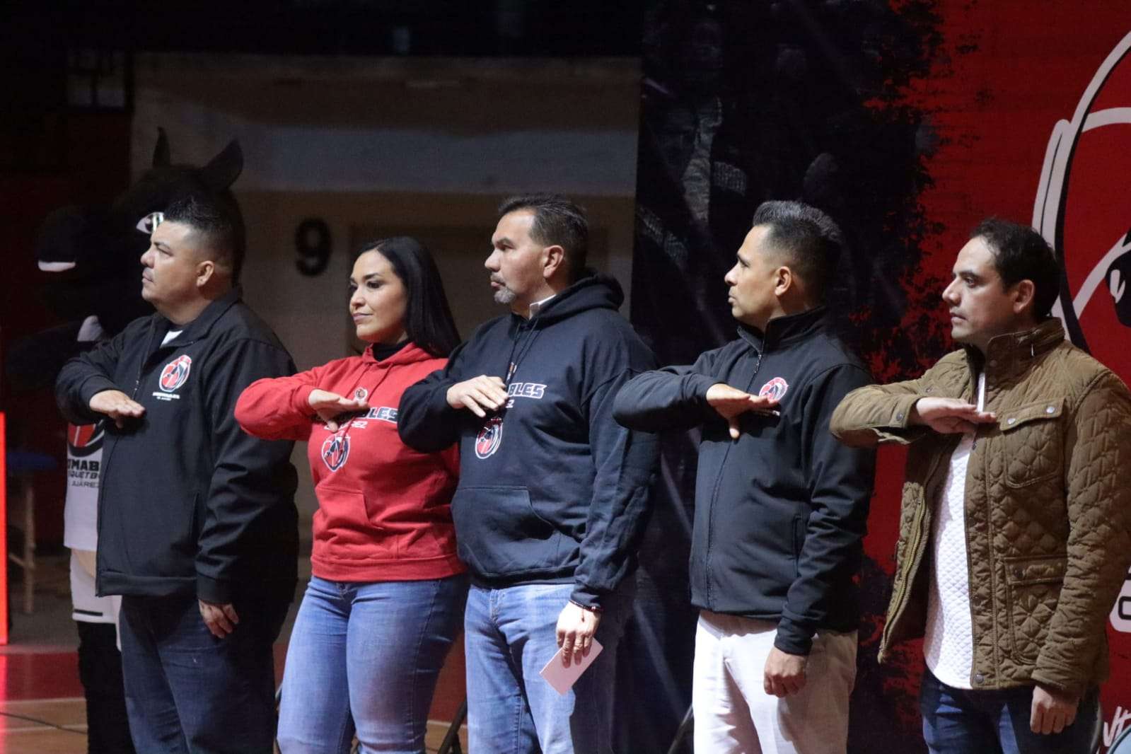 En la ceremonia de apertura de la Liga Estatal de Basquetbol (LBE) 2025, estuvieron presentes Luis Mario Estrada presidente del Club Apaches; Jesús Aragón , Presidente del Club Indomables; Juan Escalante , director del Instituto Municipal del Deporte y Cultura Física de Juárez.