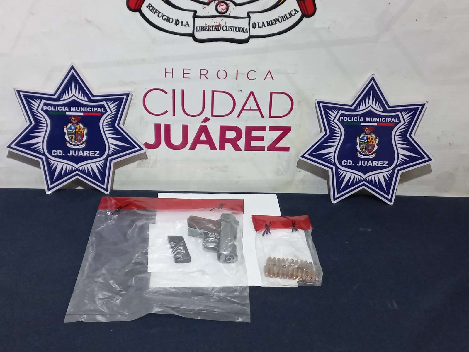 Ciudad Juárez.- Elementos de la Secretaría de Seguridad Pública Municipal arrestaron a Genaro G. M. y José Abraham R. L., por su presunta responsabilidad en la comisión de delitos contra la ley federal de armas de fuego y explosivos.