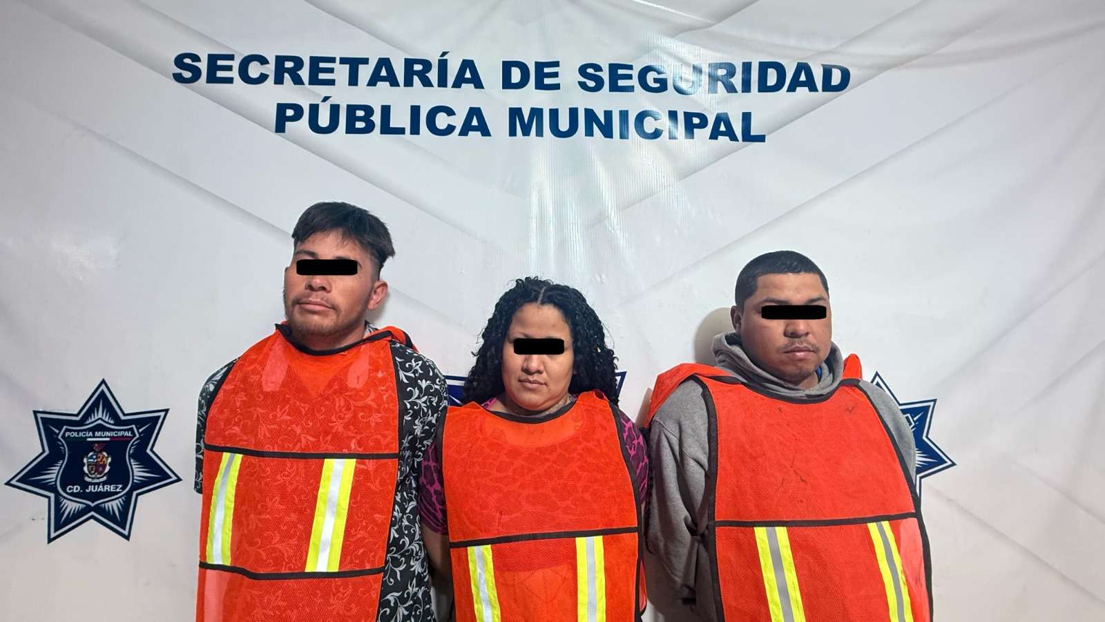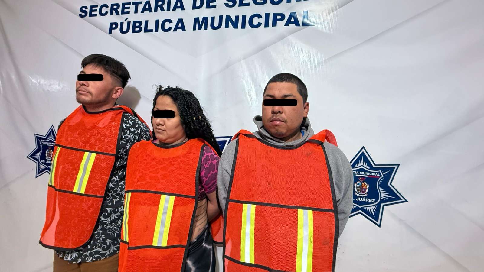 Ciudad Juárez.- Elementos de la Secretaría de Seguridad Pública Municipal arrestaron a Lucia Elena V. H., Luis Fernando B. D. y Francisco Javier A. O., por su presunta responsabilidad en la comisión de delitos contra la salud.