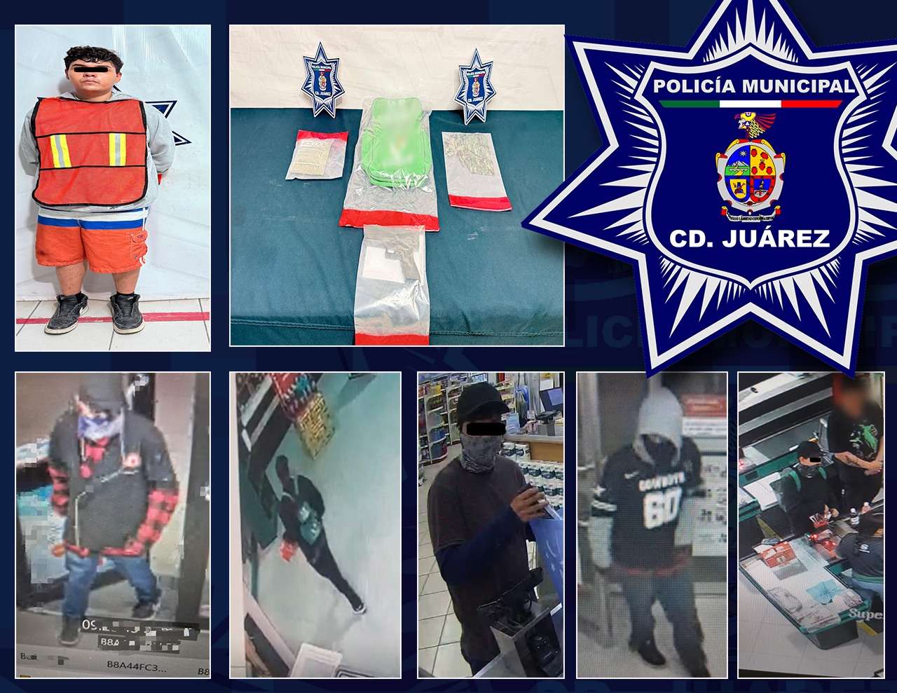 Ciudad Juárez -. Elementos de la Secretaría de Seguridad Pública Municipal adscritos en la Estación de Policía del Distrito Universidad, capturaron a Brayan S., por su presunta responsabilidad en la comisión de delitos contra la salud, mismo que será investigado por el delito de robo a casa comercial con lujo de violencia.