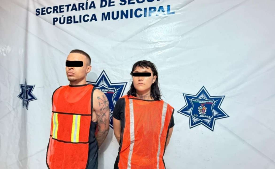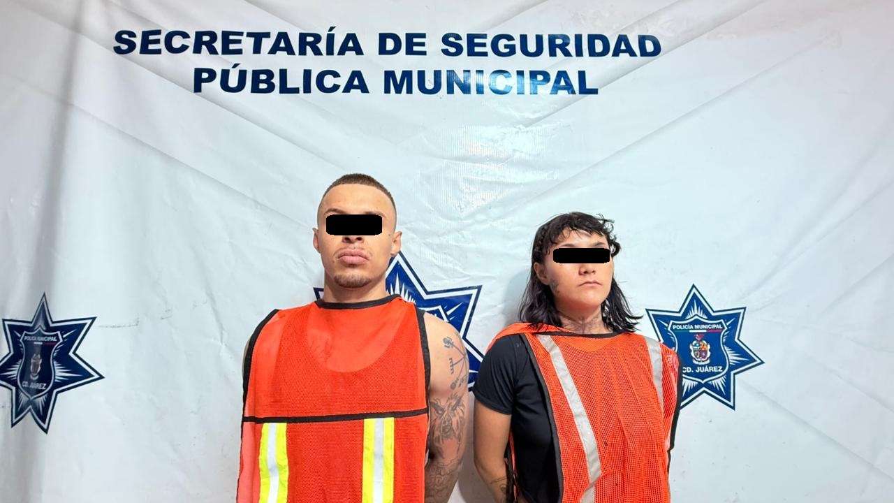 Ciudad Juárez. - Elementos de la Secretaría de Seguridad Pública Municipal arrestaron a Bryan E. C. y a Verónica V. P., por su presunta responsabilidad en la comisión del delito de posesión de vehículo con reporte de robo y delitos contra la salud.