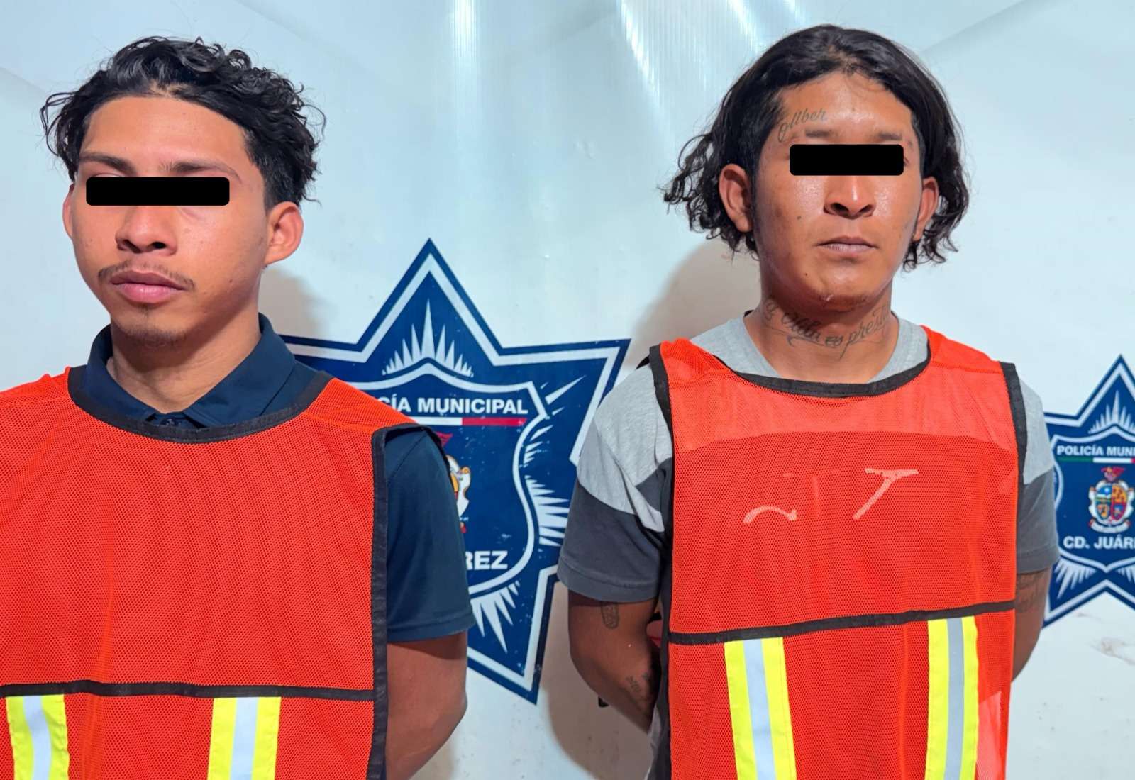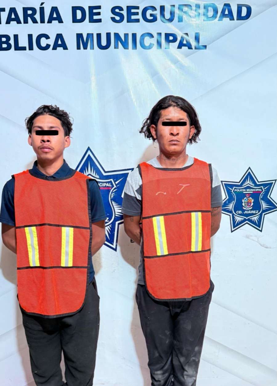 Ciudad Juárez.- Elementos de la Secretaría de Seguridad Pública Municipal arrestaron a Brian V. N. y Yoscan M. A., por su presunta responsabilidad en la comisión del delito de lesiones dolosas.