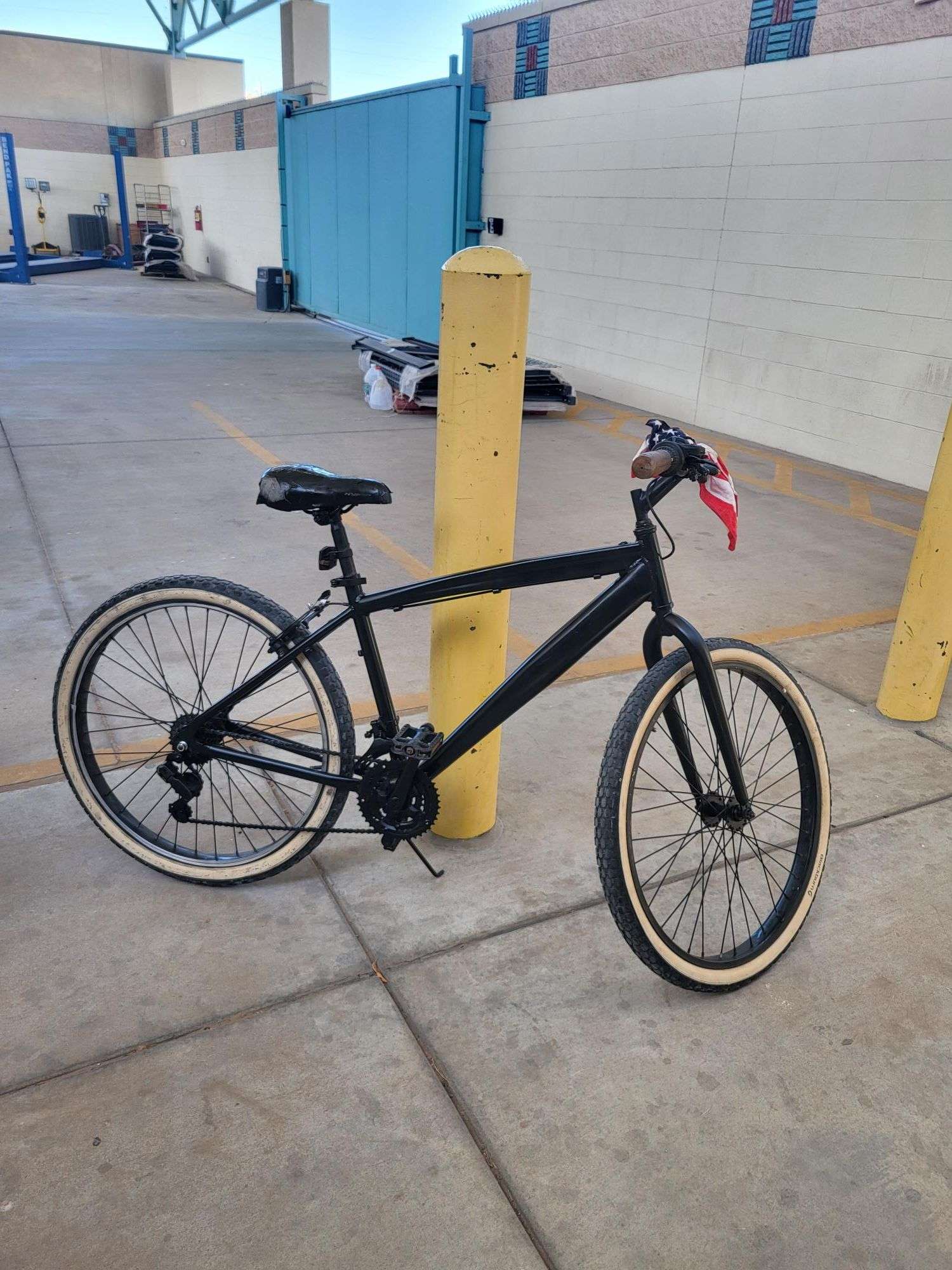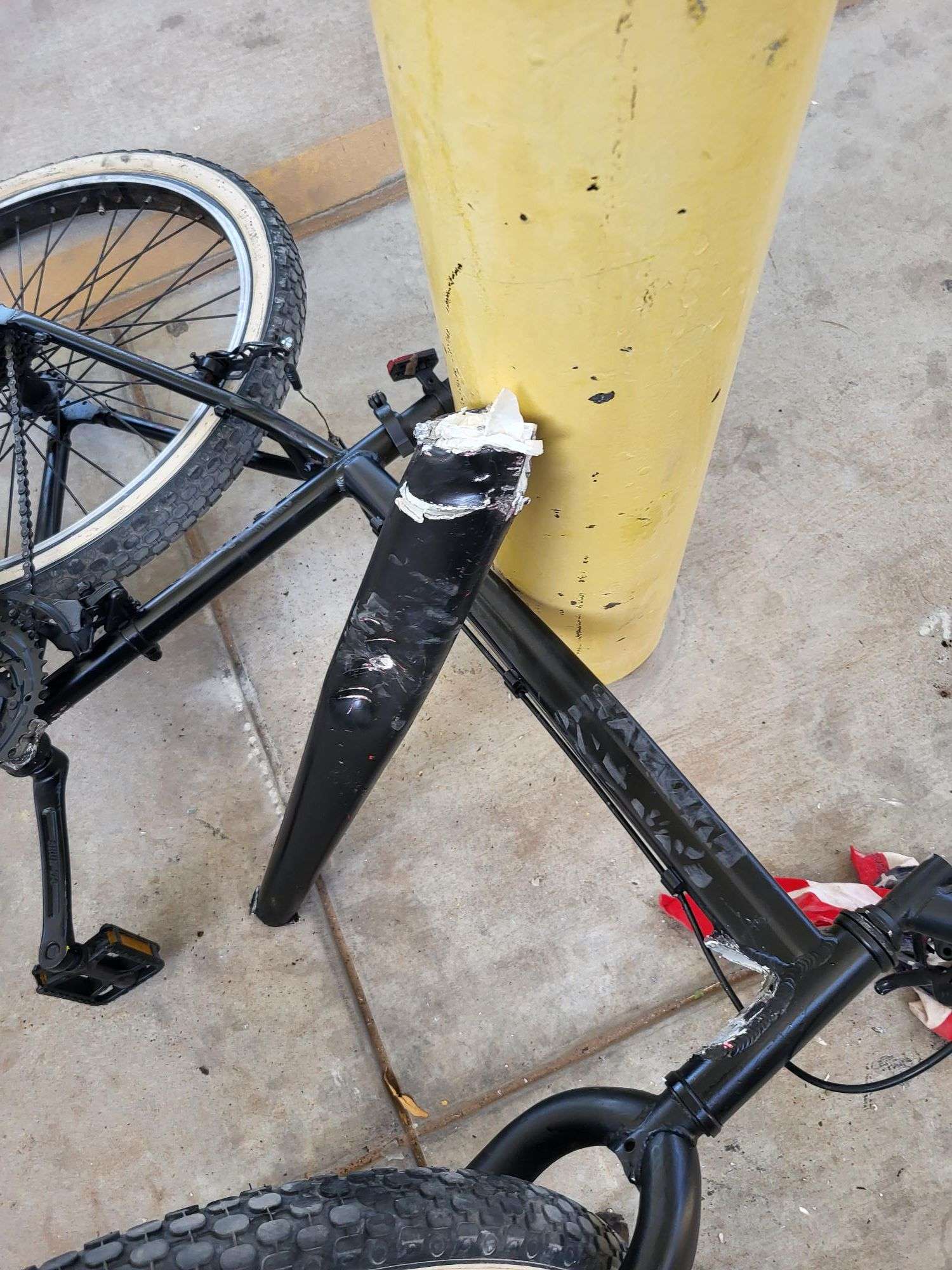 La bicicleta, color negro, tipo de montaña, traía un “clavo” en el cuadro, justo en el tubo inferior.