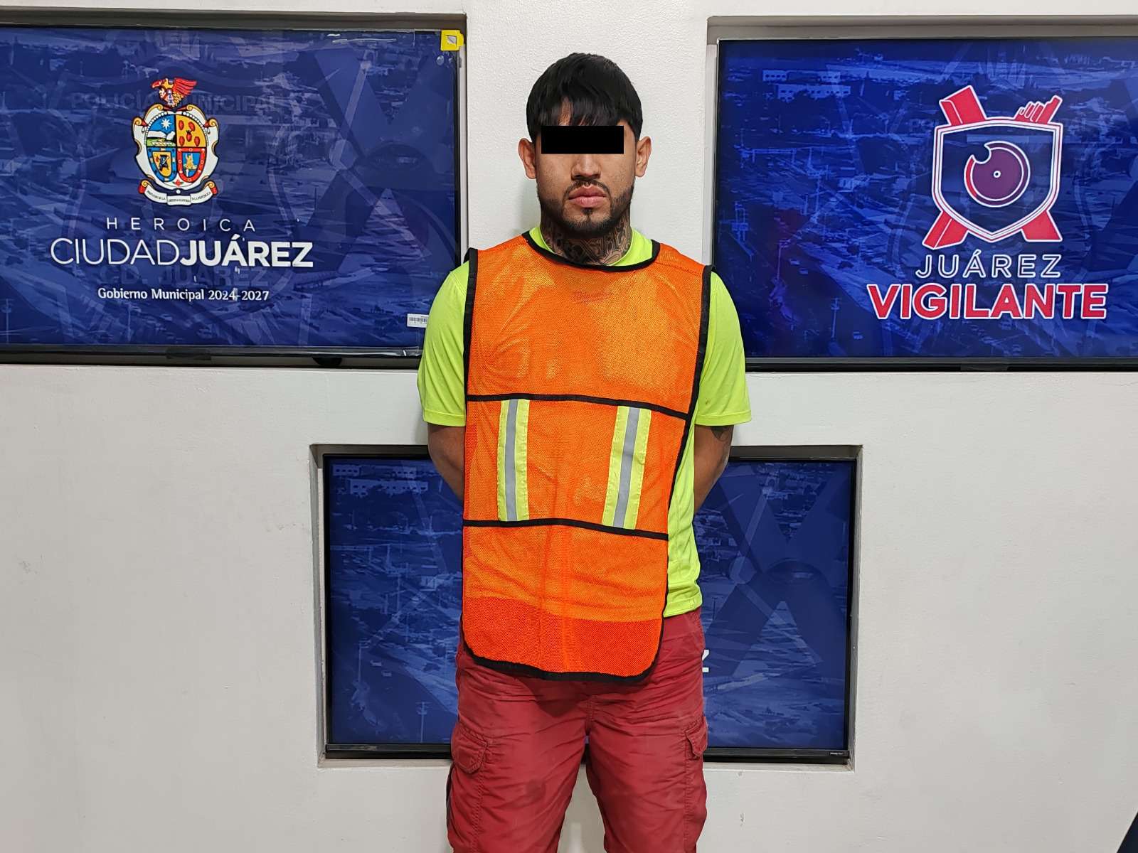 Ciudad Juárez.- Elementos de la Secretaría de Seguridad Pública Municipal, adscritos al Grupo de Operaciones Especiales (GOE), realizaron la detención de José Manuel S. A., por su presunta responsabilidad en la comisión de delitos contra la ley federal de armas de fuego y explosivos.
