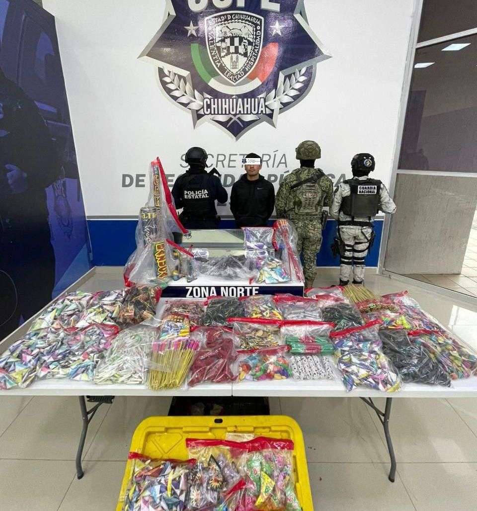La intervención se llevó a cabo como parte de las acciones permanentes de vigilancia y prevención que mantiene la SSPE, especialmente durante la temporada decembrina, con el objetivo de reducir riesgos a la población, prevenir accidentes y salvaguardar la integridad de las familias juarenses. Tras el aseguramiento, el detenido y lo decomisado fueron puestos a disposición del Ministerio Público de la Fiscalía General de la República, a fin de que se realicen las investigaciones correspondientes.