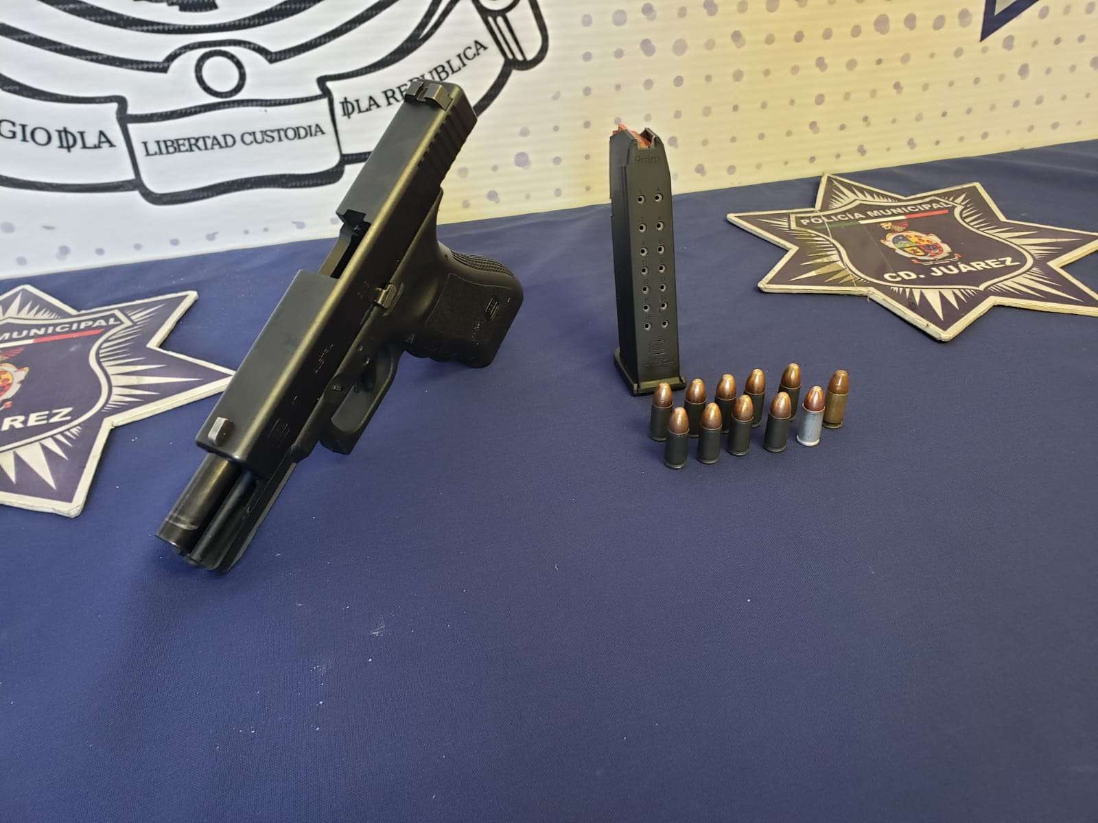 Juárez.- Agentes de la Secretaría de Seguridad Pública Municipal realizaron el arresto de Jesús Alberto P. G. y un adolescente de 17 años, por su presunta responsabilidad en la comisión de delitos contra la ley federal de armas de fuego y explosivos.