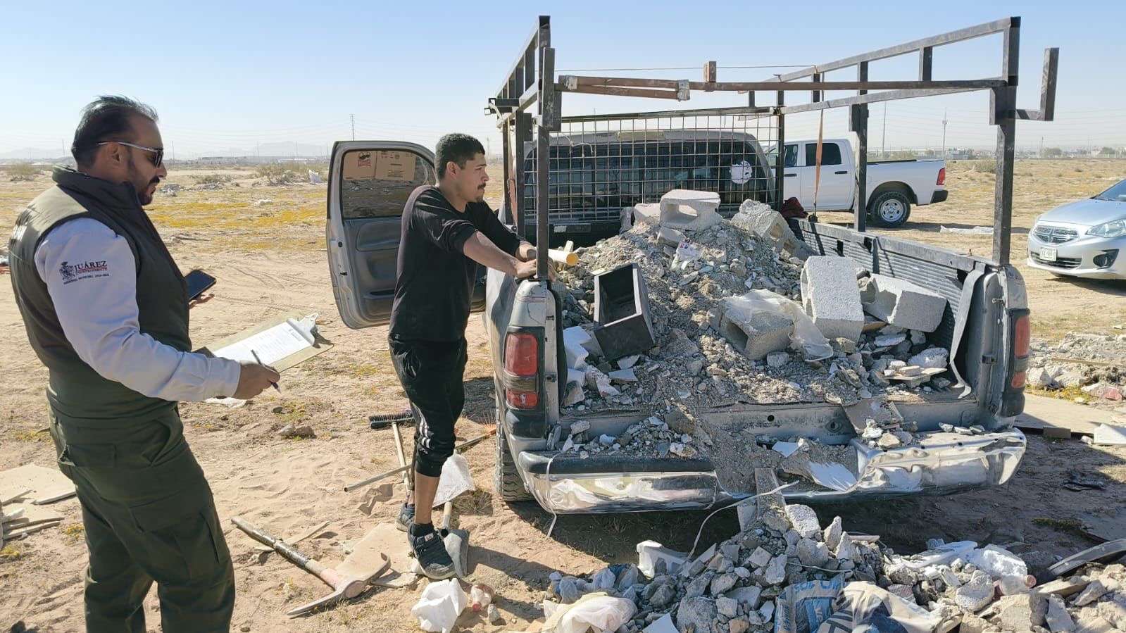 Ciudad Juárez.- Como parte del operativo “Cochino de la Semana” que lleva a cabo el Gobierno Municipal, con la intención de inhibir los tiraderos clandestinos de basura en distintos puntos de la ciudad, personal de las direcciones de Ecología y de Limpia sorprendieron a un ciudadano mientras arrojaba escombro en un punto no autorizado.