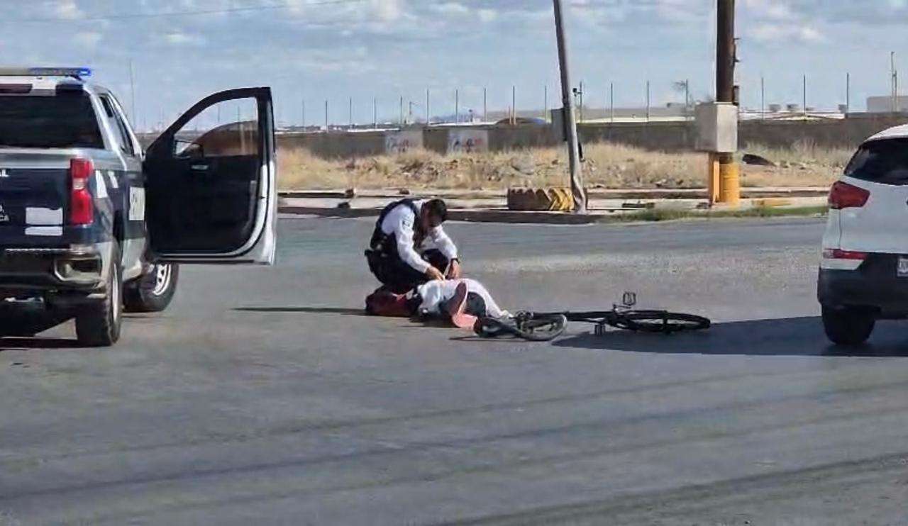 Ciudad Juárez.- Un ciclista de aproximadamente 40 a 45 años de edad quedó tendido sobre la vía pública tras ser atropellado en el cruce de la avenida Tecnológico y Ramón Rayón, en un punto cercano a la zona de Manuel Talamás Camandari.