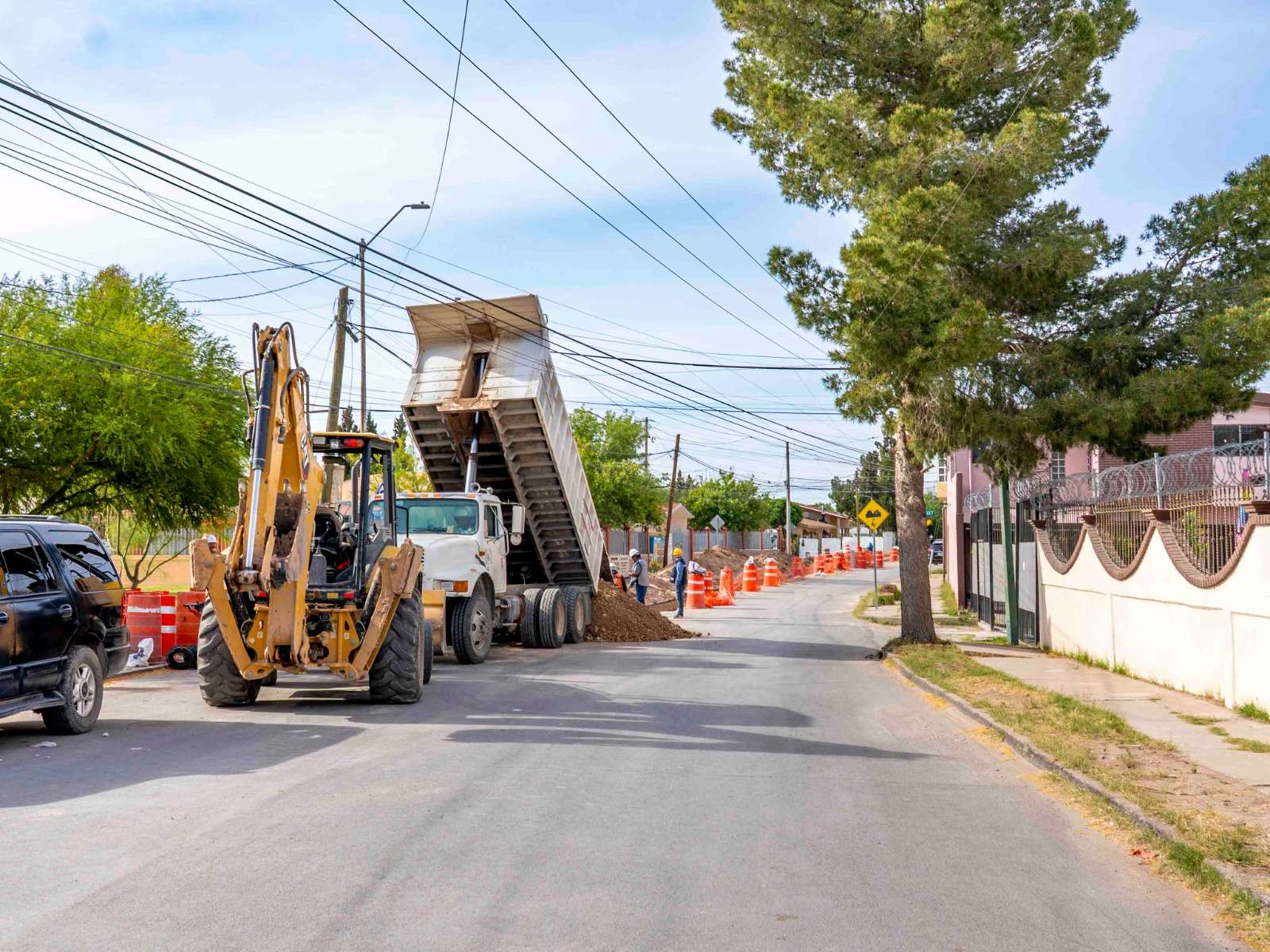 Ciudad Juárez.- La Junta de Agua y Saneamiento de Ciudad Juárez informa que continúan los trabajos de introducción de la línea de agua tratada, así como la instalación de tubería nueva de drenaje en la calle Montebello, con el objetivo de restablecer la circulación vehicular en el menor tiempo posible y facilitar el acceso a padres de familia de las escuelas ubicadas en la zona.