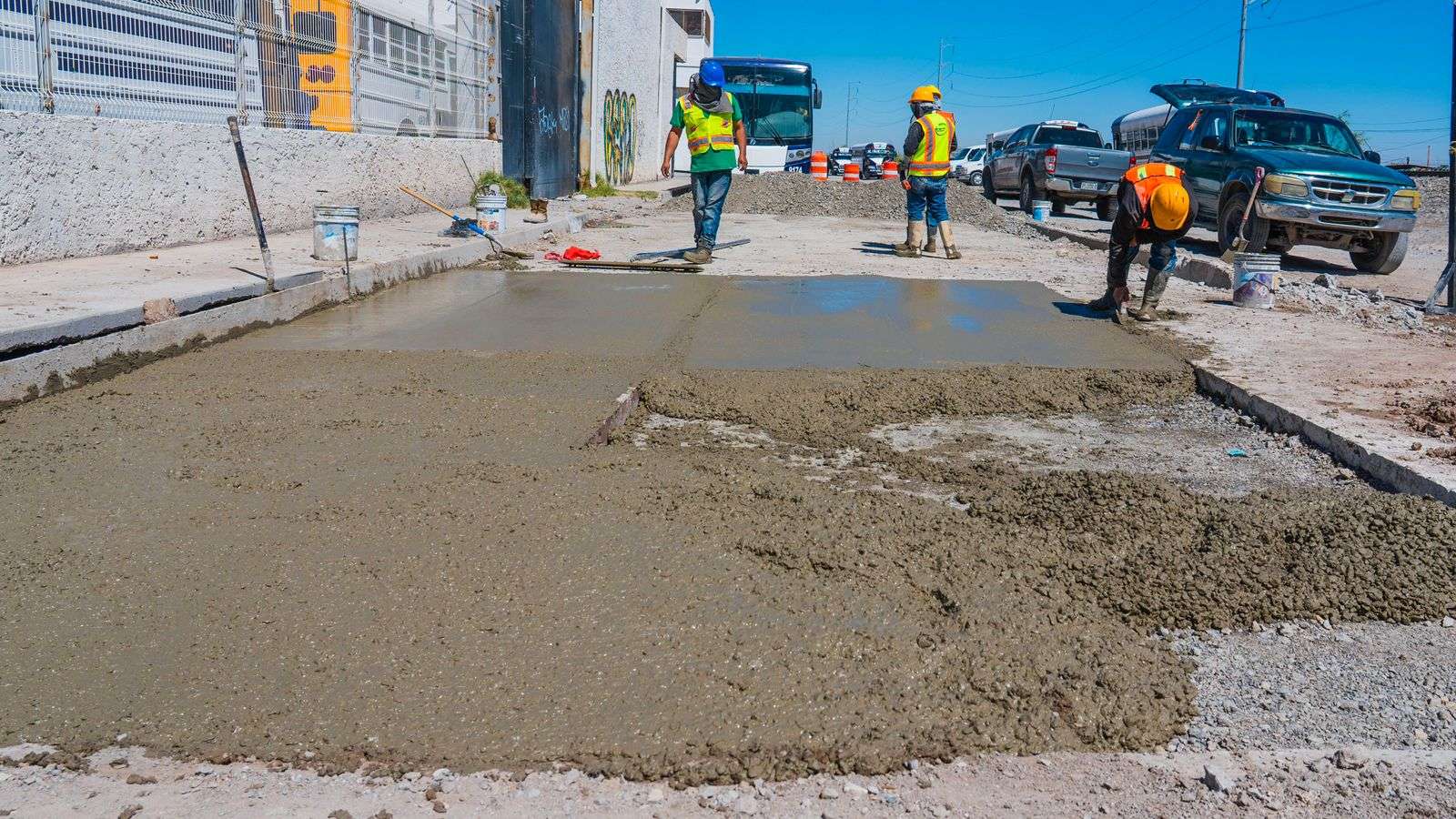 El ingeniero Alejandro Oruña, supervisor del Departamento de Bacheo de la JMAS, informó que este viernes se realizaron trabajos de colado de concreto para reparar zanjas y áreas afectadas por las intervenciones en la infraestructura hidráulica.